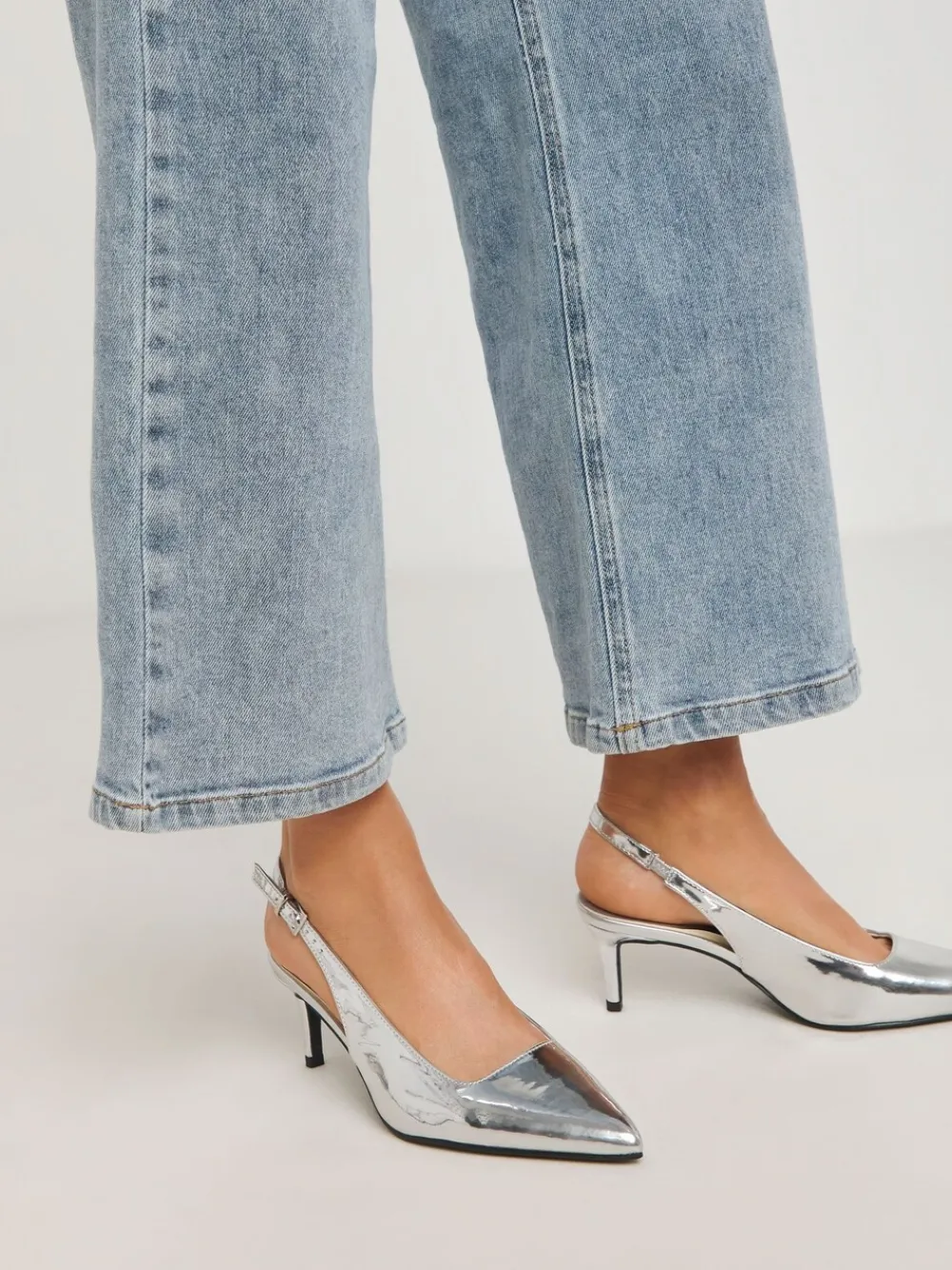 Verrijk uw schoenencollectie met deze metallic slingbacks, een nieuwe interpretatie van de klassieke stijl. Puntige neus, verstelbare slingback met gespsluiting, gevoerde sok en teruggezette Naaldhak voor ultiem comfort. Hakhoogte 6,5 cm. Bovenwerk – 100% PU. Voering – 100% PU. Zool – 100% andere vezels.