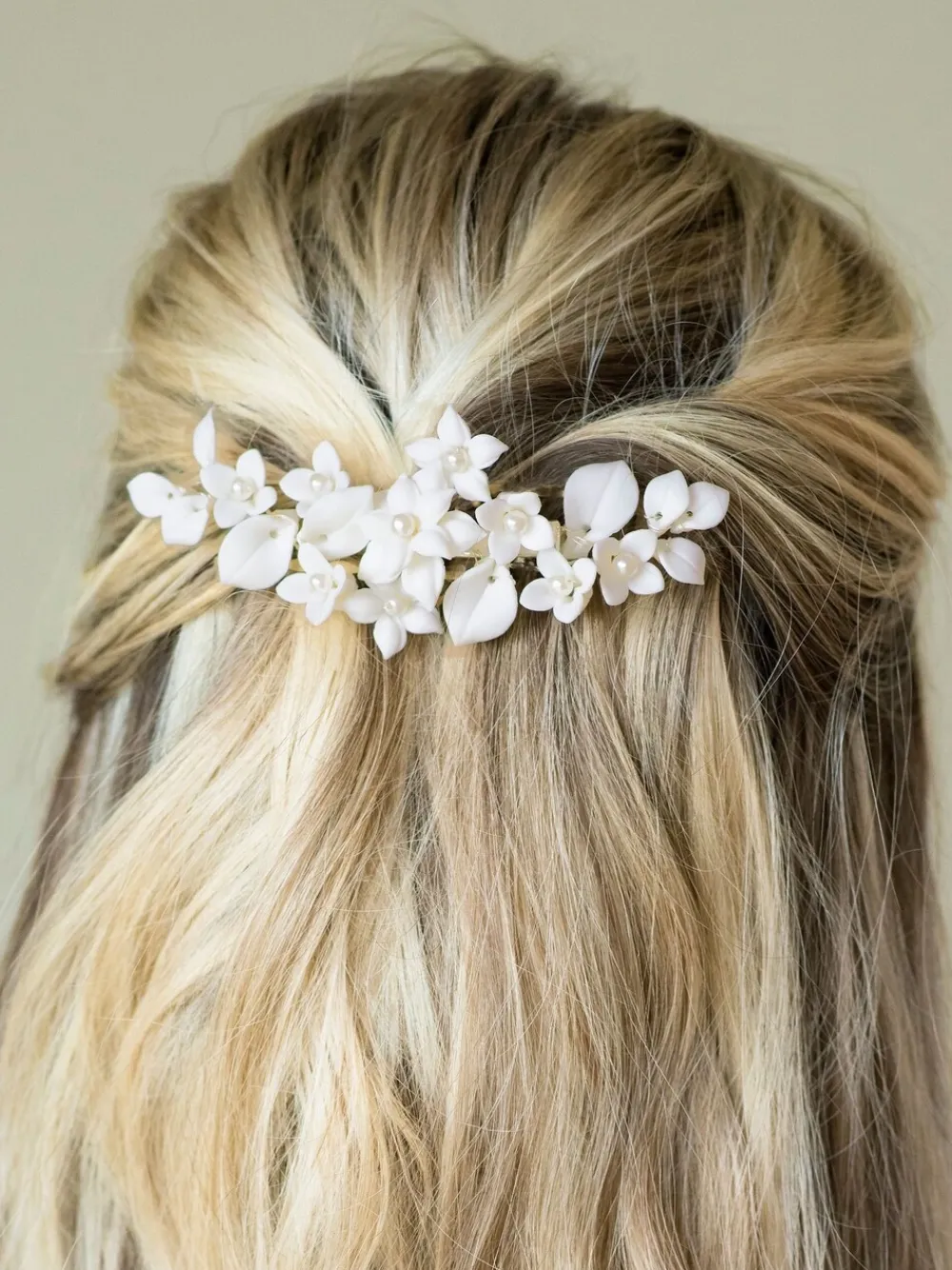 Snowdrop haarspeld met mooie keramische bloemen*Ivory & Co Online