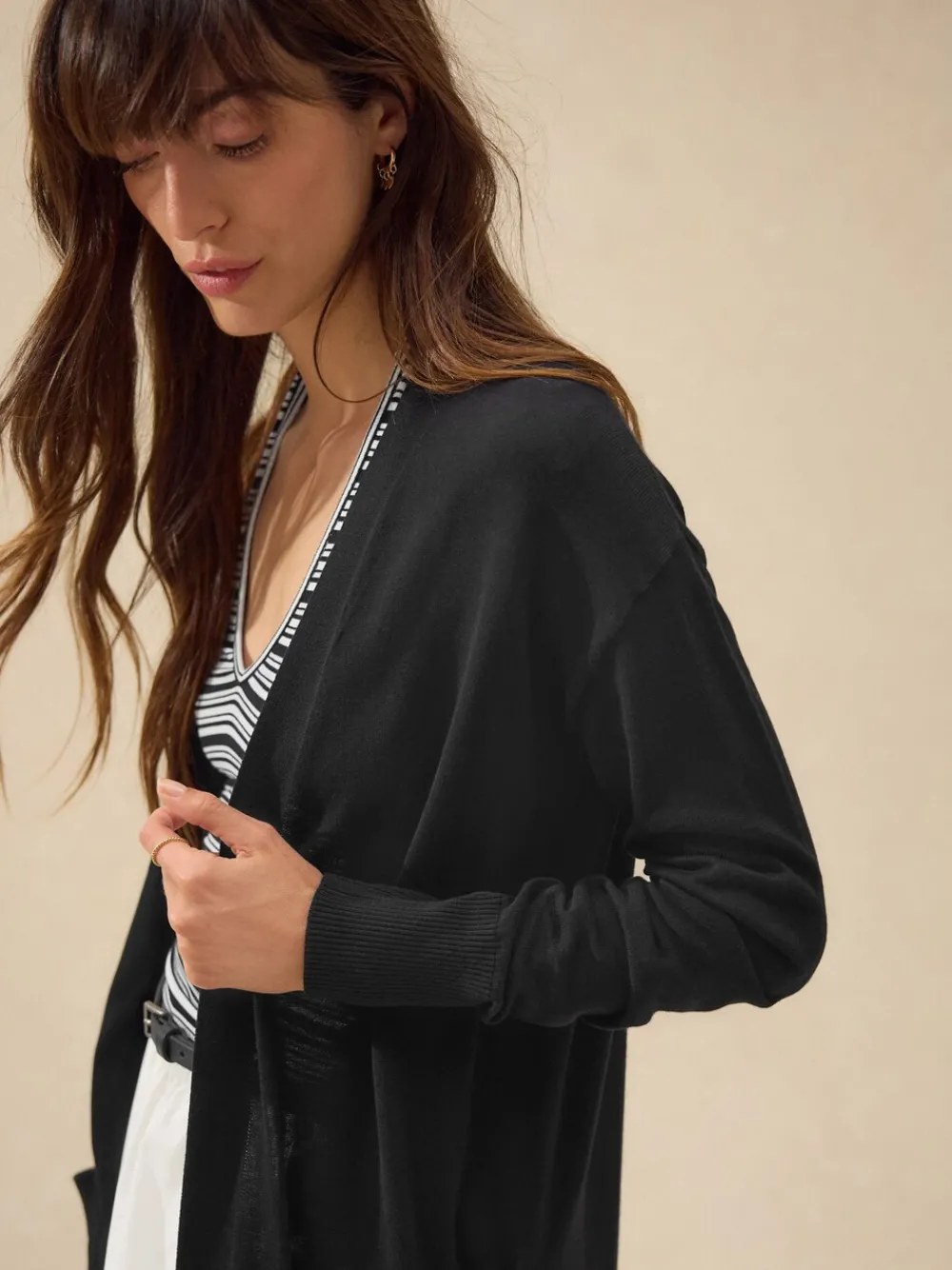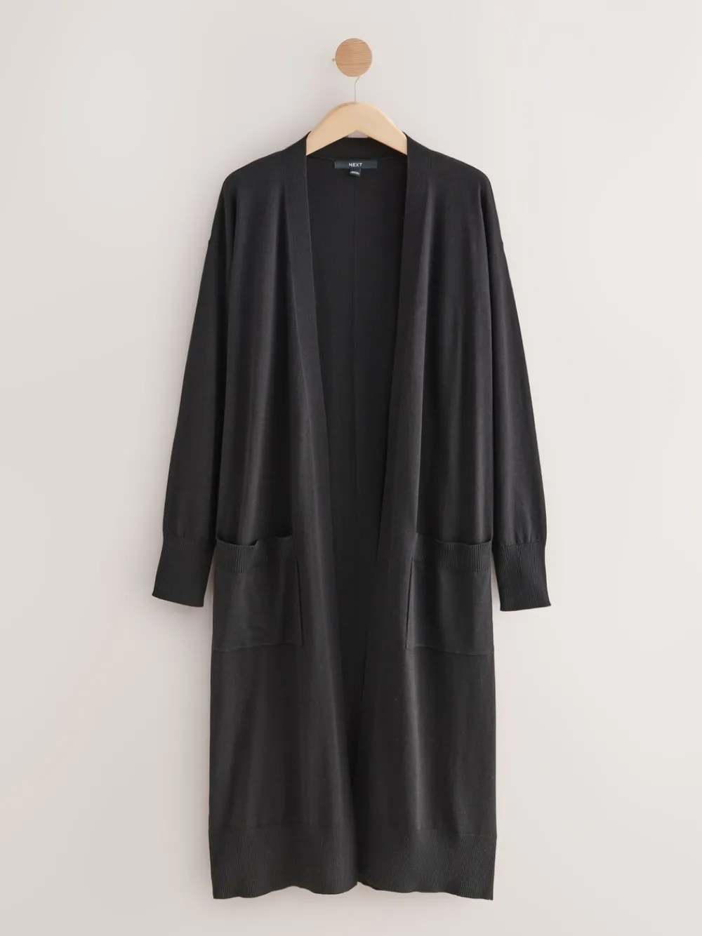 Enhance your layering options with this soft touch, cotton-rich longline cardigan. It comes in black, and features pockets for a practical and comfortable feel, making it a versatile piece for a sophisticated, everyday look. Longline Pockets Cotton Soft touch Machinewasbaar. 60% katoen, 40% Livaeco™-viscose. Onze tall collectie is ontworpen om te passen bij vrouwen van 5’10” en langer. Dit is verhoudingsgewijs vergroot door het lichaam, de benen en de mouwen om de perfecte pasvorm te bereiken. Verkrijgbaar in maat 8-20.