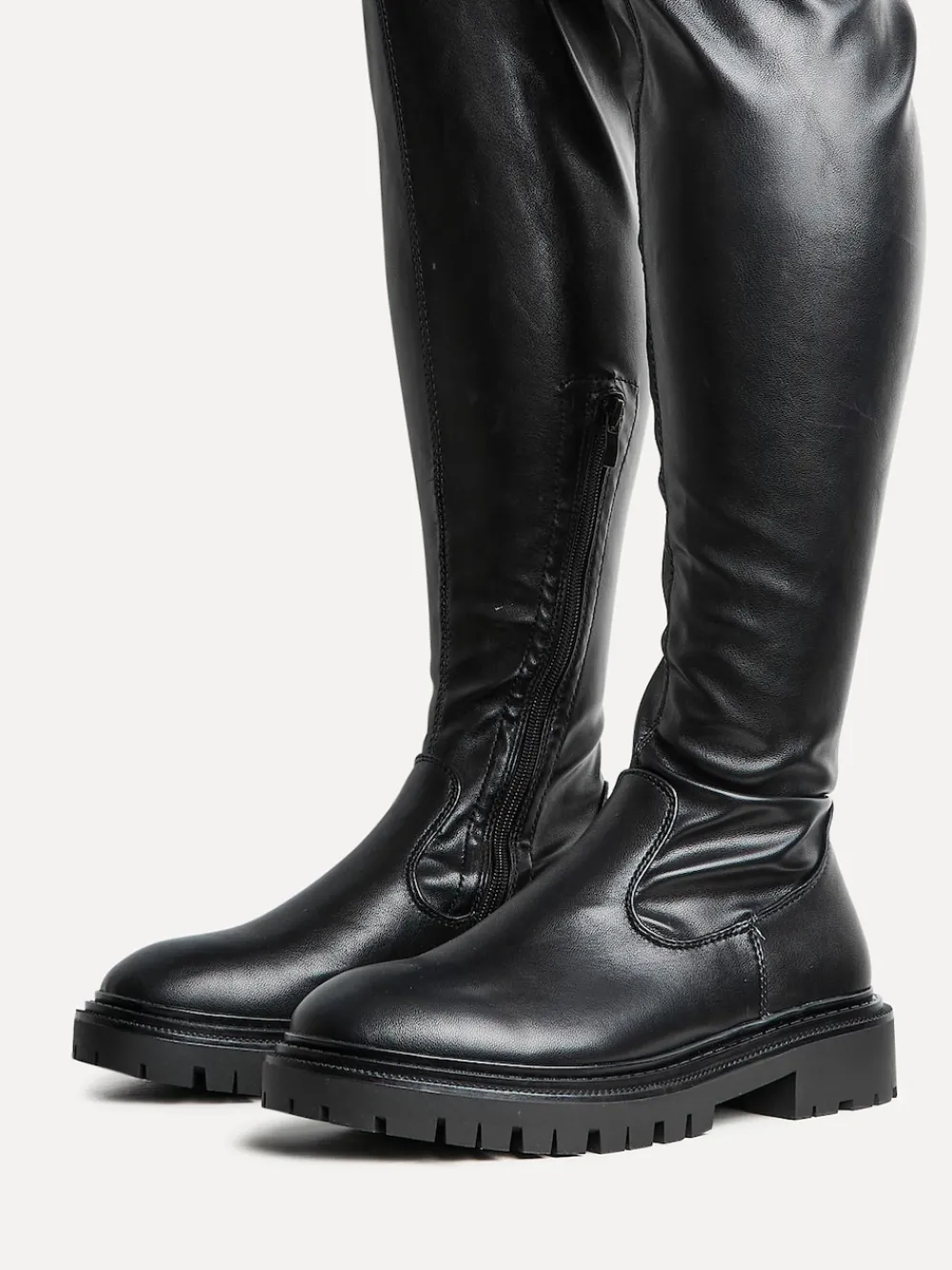 Onze Black Sonny is een elegante overknee laars gemaakt van luxe imitatieleer en voorzien van een halve rits aan de binnenkant. Sonny staat symbool voor strakke verfijning en is daarmee een onmisbare aanvulling op uw wintergarderobe. Gemaakt met een zachte, gevoerde binnenzool voor gemak en comfort bij elke stap. Laarslengte: 62cm. Hakhoogte 2 cm. Bovenwerk – Andere materialen, voering en sok – Textiel zool – Andere materialen.
