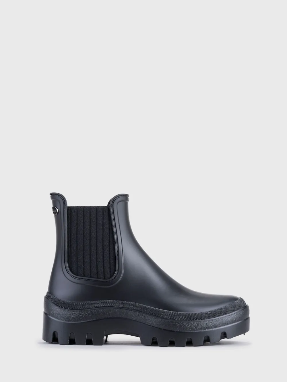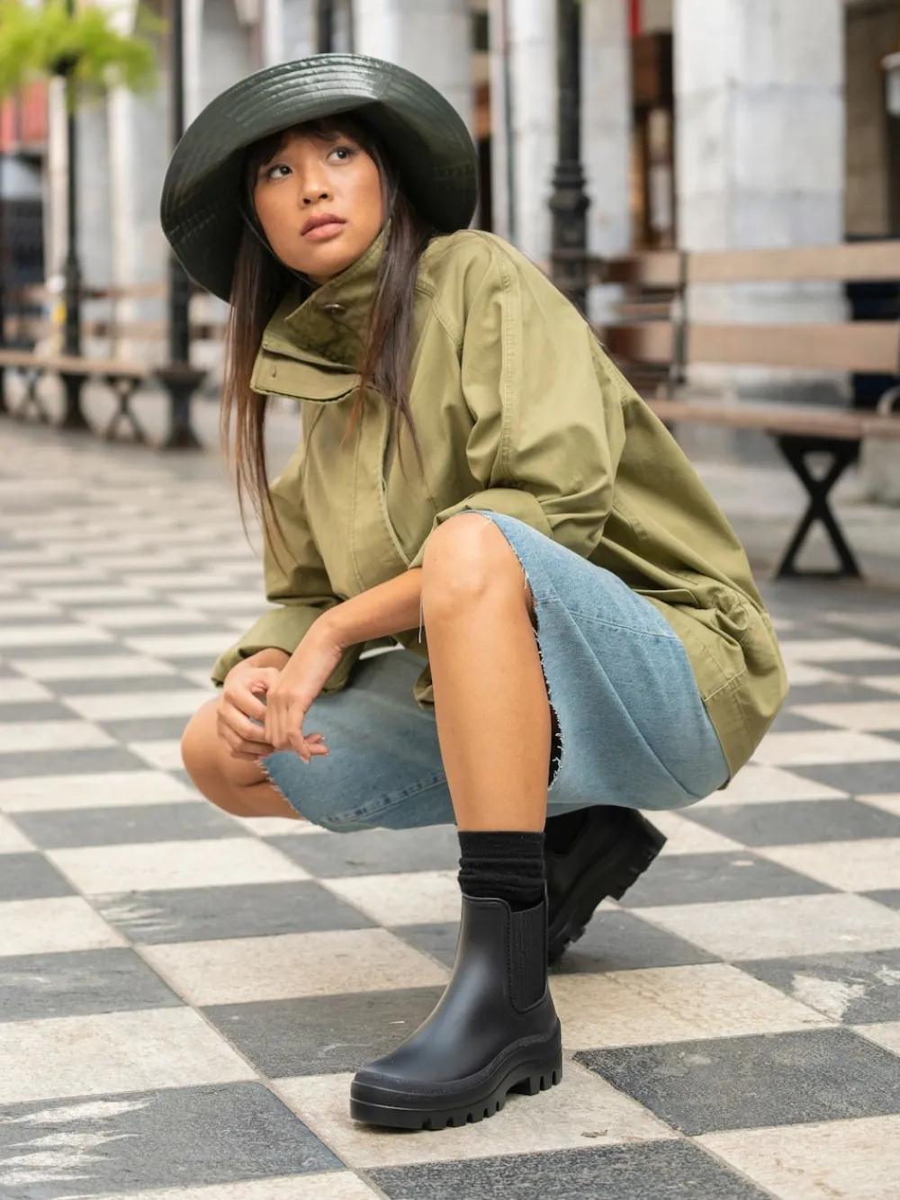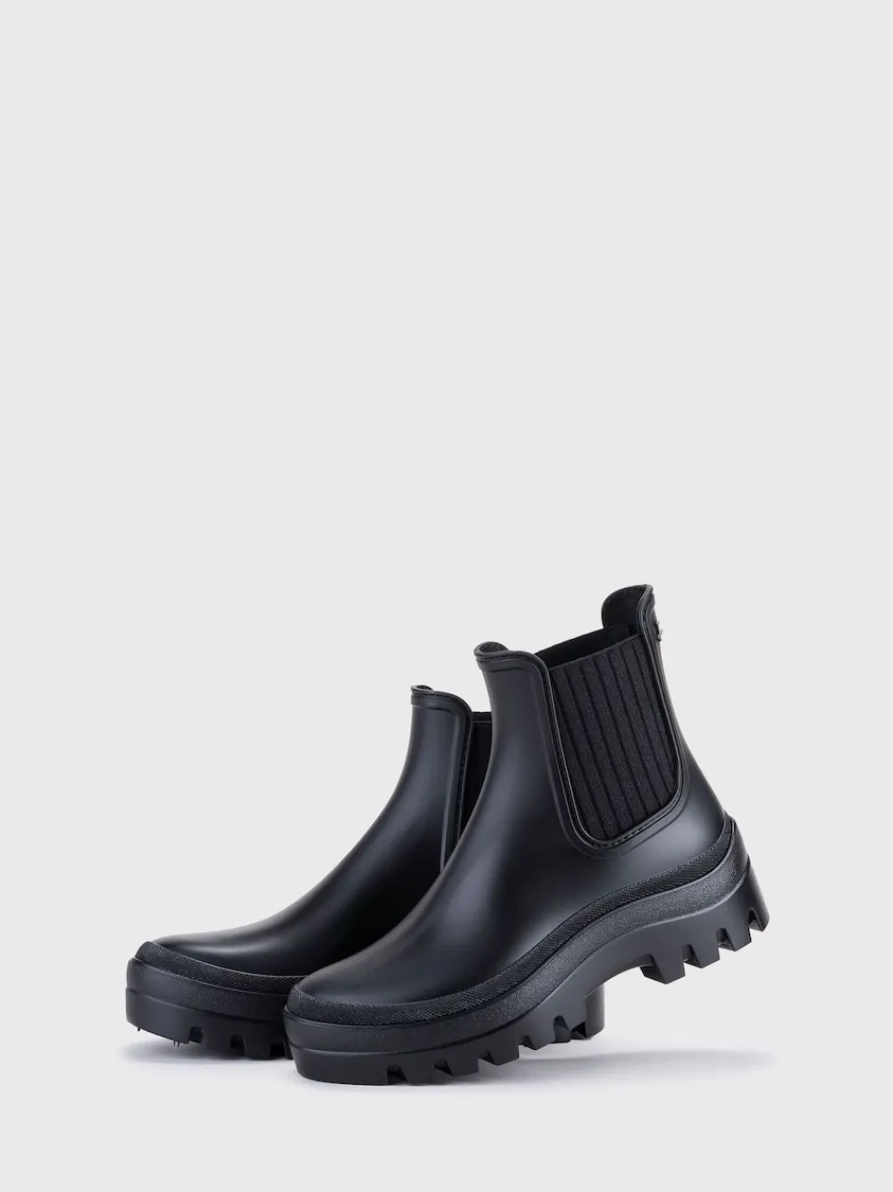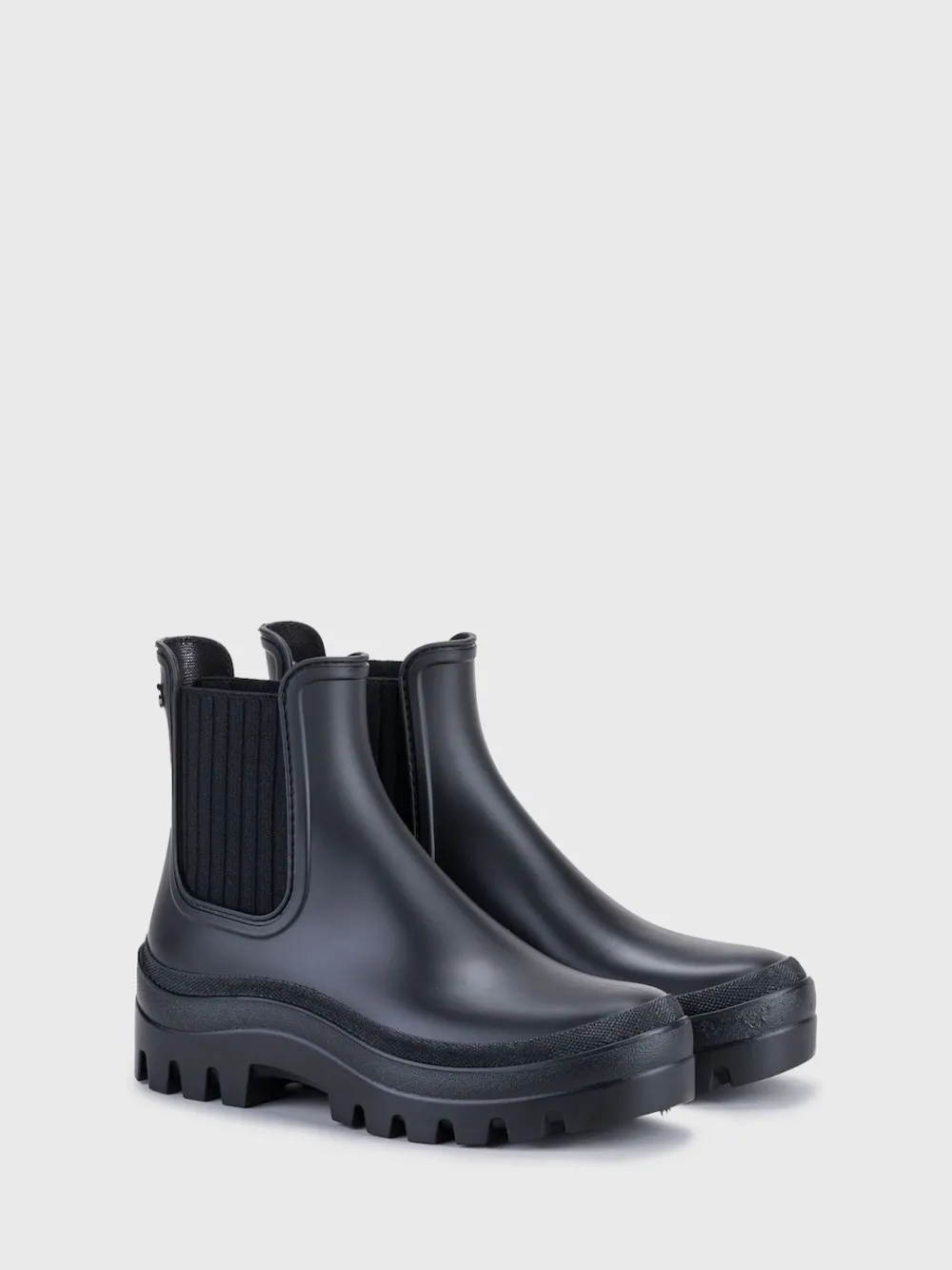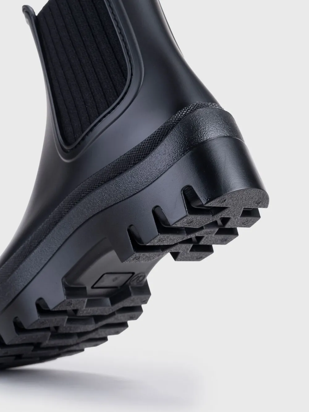 Deze enkellaarzen met matte afwerking zijn de ultieme combinatie van stijl en functionaliteit. Deze laarzen zijn voorzien van een waterdichte voering, uitneembare binnenzolen voor extra comfort en antislipzolen. Of je nu door plassen ploetert op een regenachtige dag of gewoon boodschappen doet in de stad, deze enkellaarzen zijn ideaal voor jou. Bovenwerk – 100% synthetisch rubber, voering. en sokken – 100% synthetisch rubber. Zool – 100% rubber.