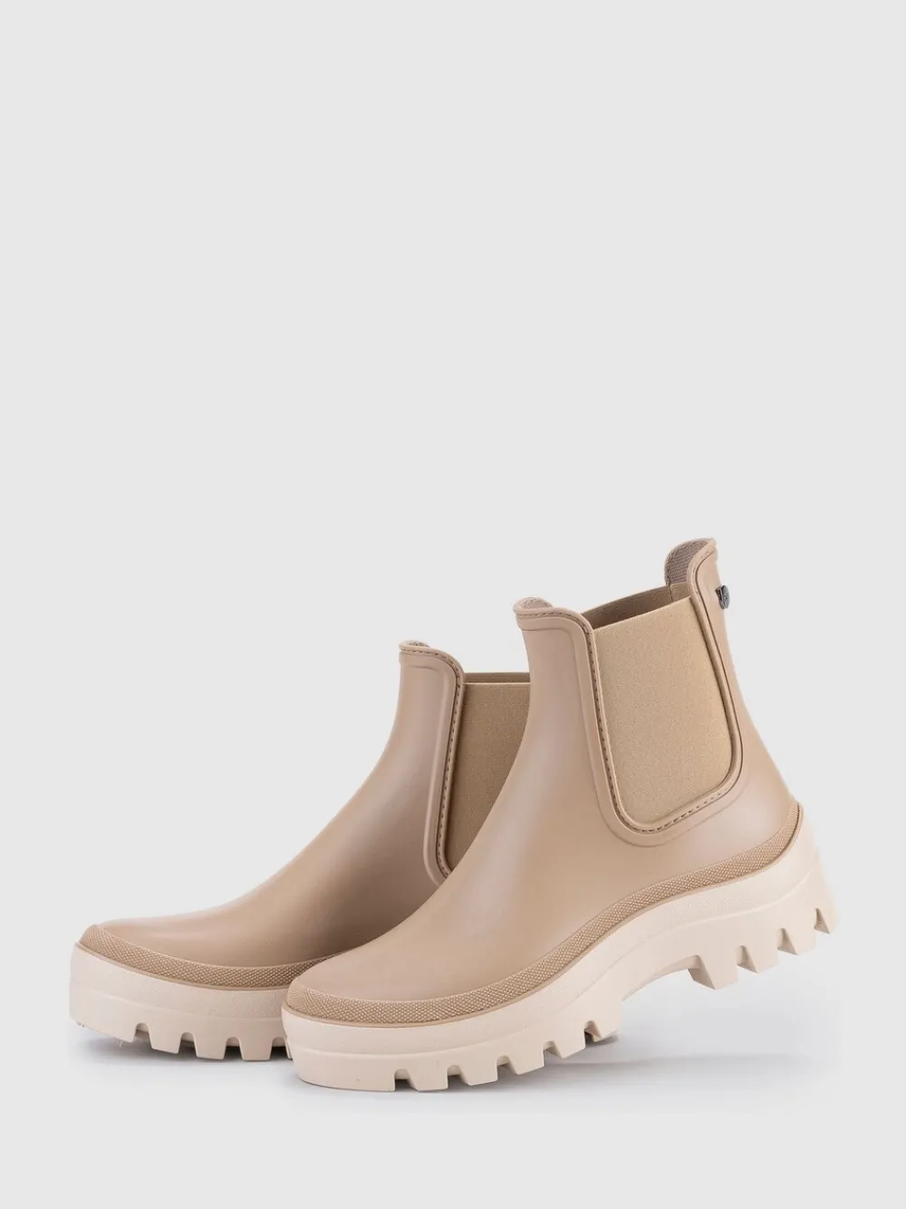 Deze enkellaarzen met matte afwerking zijn de ultieme combinatie van stijl en functionaliteit. Deze laarzen zijn voorzien van een waterdichte voering, uitneembare binnenzolen voor extra comfort en antislipzolen. Of je nu door plassen ploetert op een regenachtige dag of gewoon boodschappen doet in de stad, deze enkellaarzen zijn ideaal voor jou. Bovenwerk – textiel. Voering en voetbed – overige materialen, zool – Andere materialen.