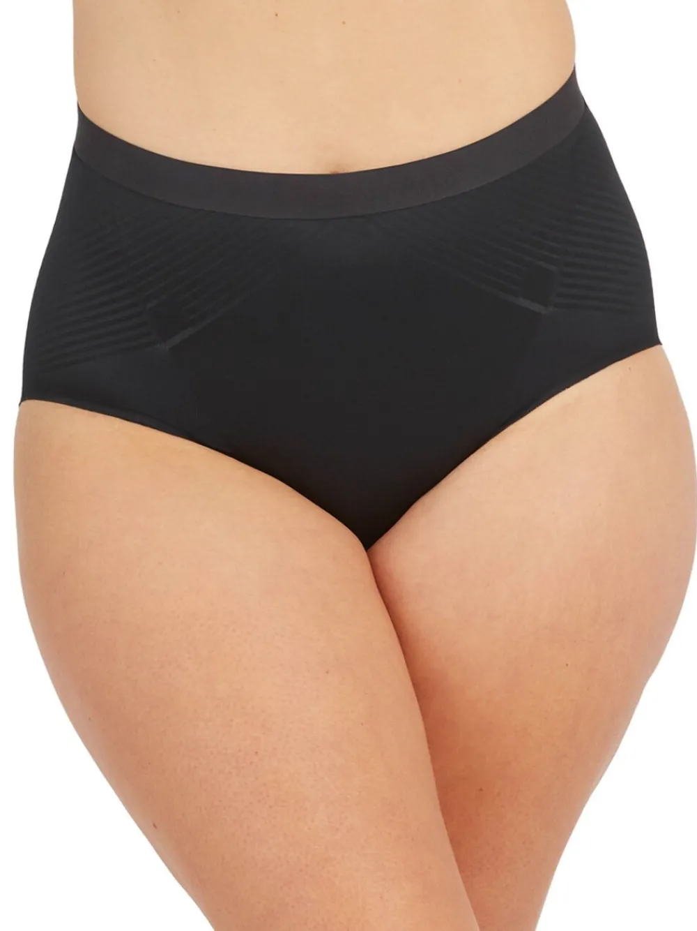 Experience lightweight and powerful compression with our SPANXshape™ Invisible Brief. Featuring advanced single-layer Printed Power® shaping technology made with LYCRA® FitSense™ Print Technology, it includes targeted tummy control panels that wrap around for 360-degree shaping. Designed with ultra-thin, breathable fabric that is moisture-wicking and quick-drying, a cotton gusset for comfort, a no-slip silicone waistband that prevents rolling, and no-dig flexible leg openings, this sleek shapewear design goes undetected under any outfit. Buitenkant 55% nylon, 45% Lycra® elastaan. Kruisje 100% katoen.