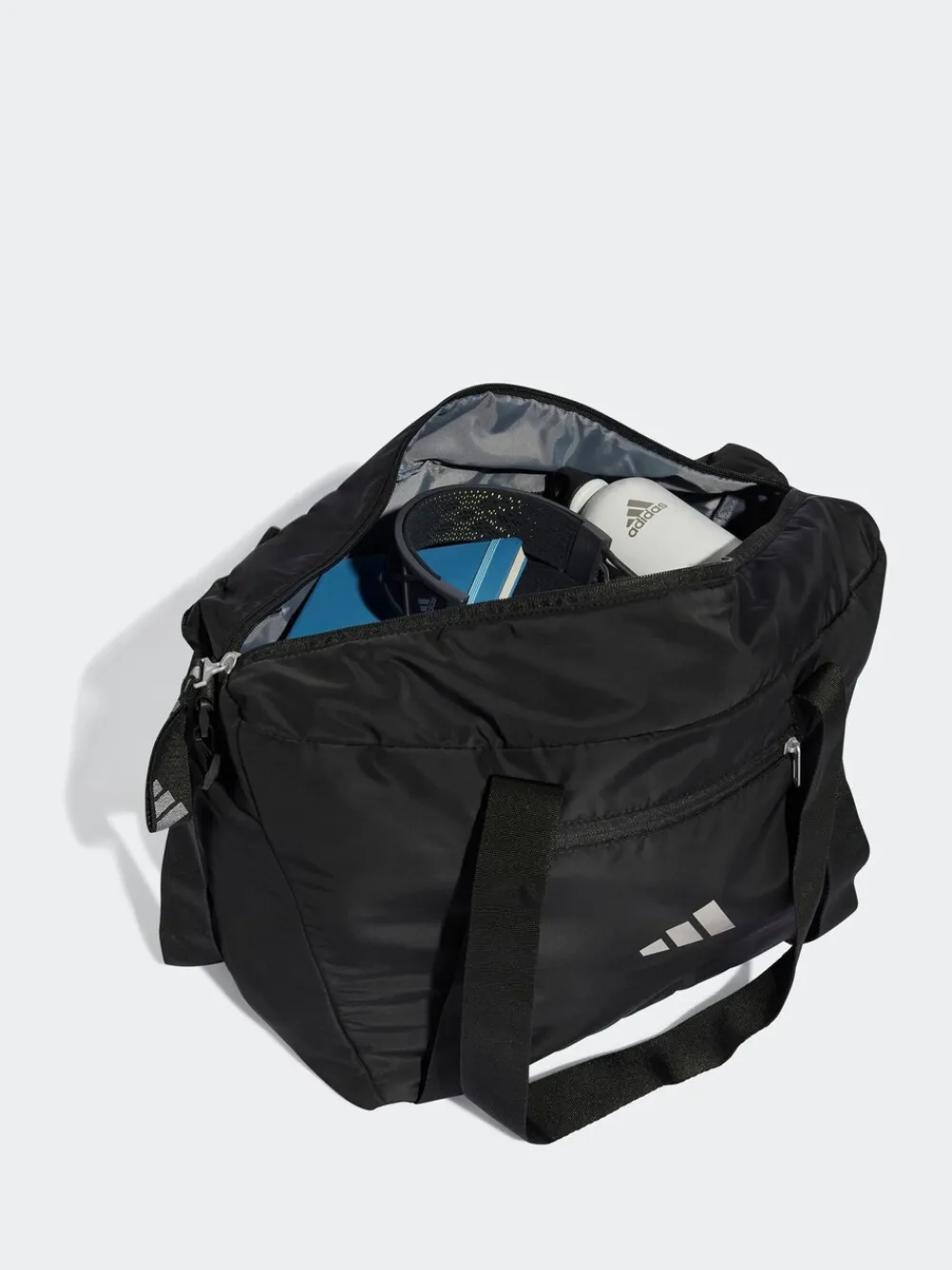 The gym is your happy place, and this adidas gym bag keeps you organised so you can make the most of every minute there. It has a pocket for your water bottle and a cording system for your yoga mat. A front zip pocket keeps small essentials within easy reach. 100% PET.