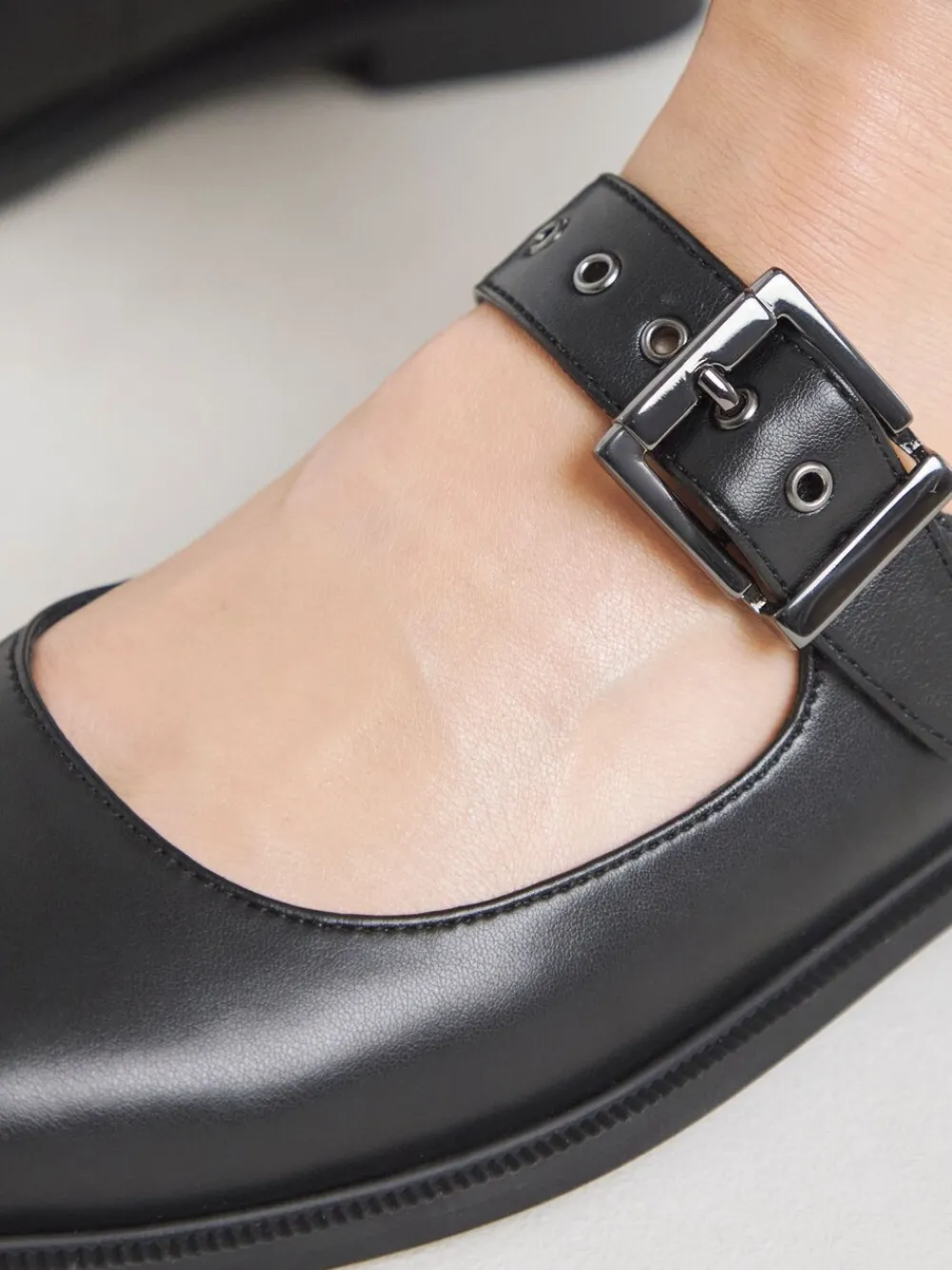 Mary Janes are here to stay. Sqaure toe. Adjustable buckle strap. Smart outsole. Bovenwerk – 100% polyurethaan, voering en sok – 100% PU.