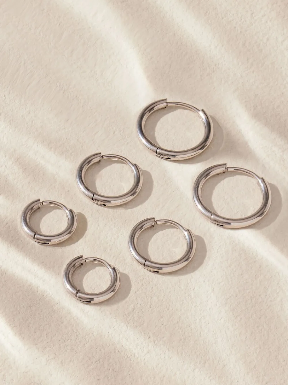 – Stainless Steel Graduated Huggie Hoop Earrings 3 Pack*Next Clearance