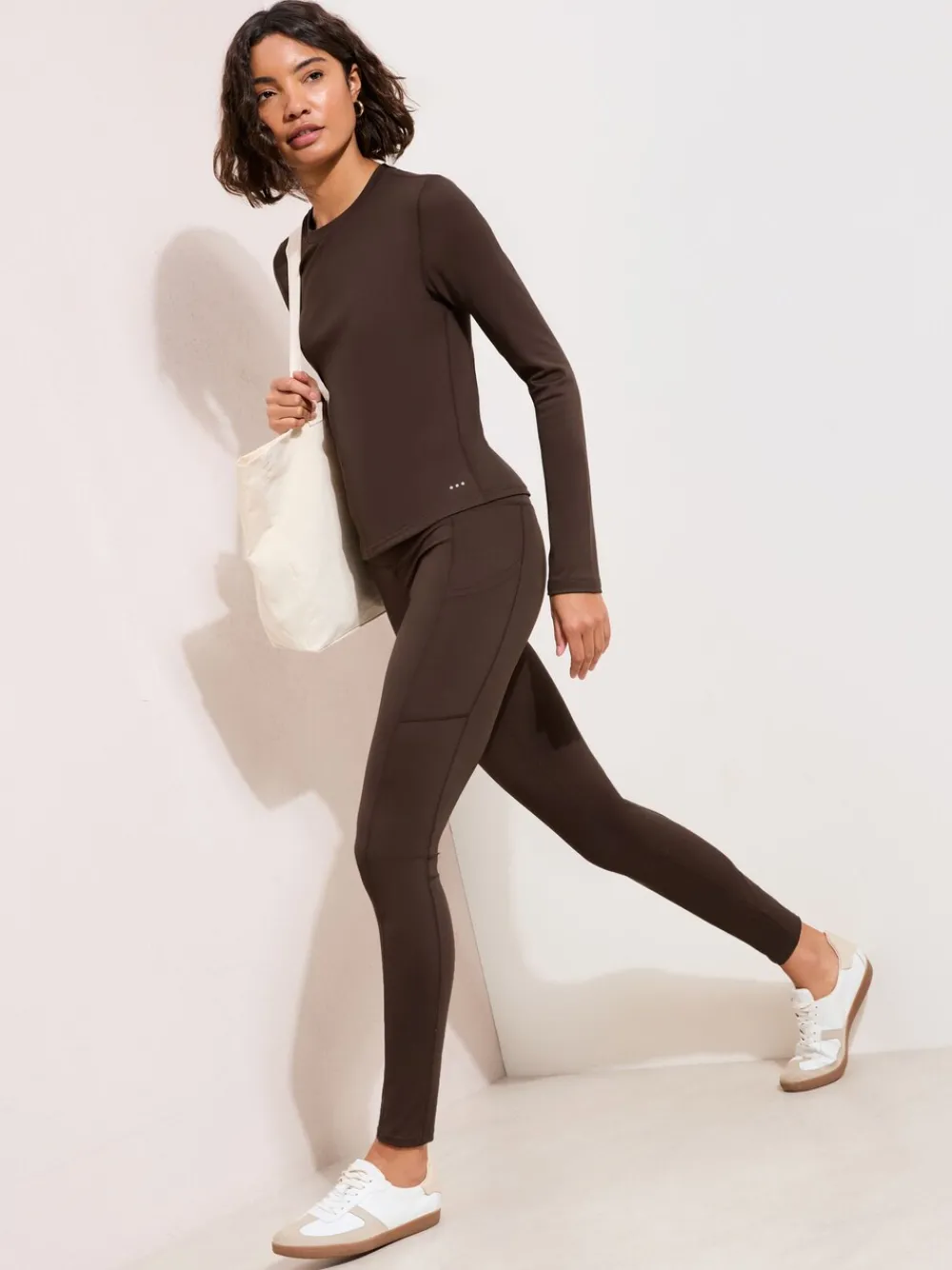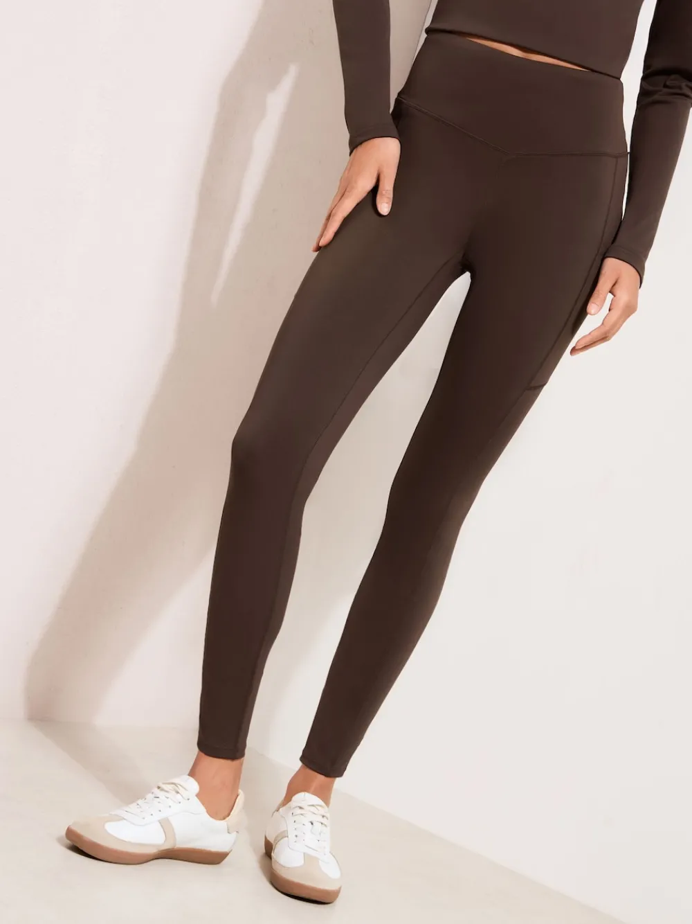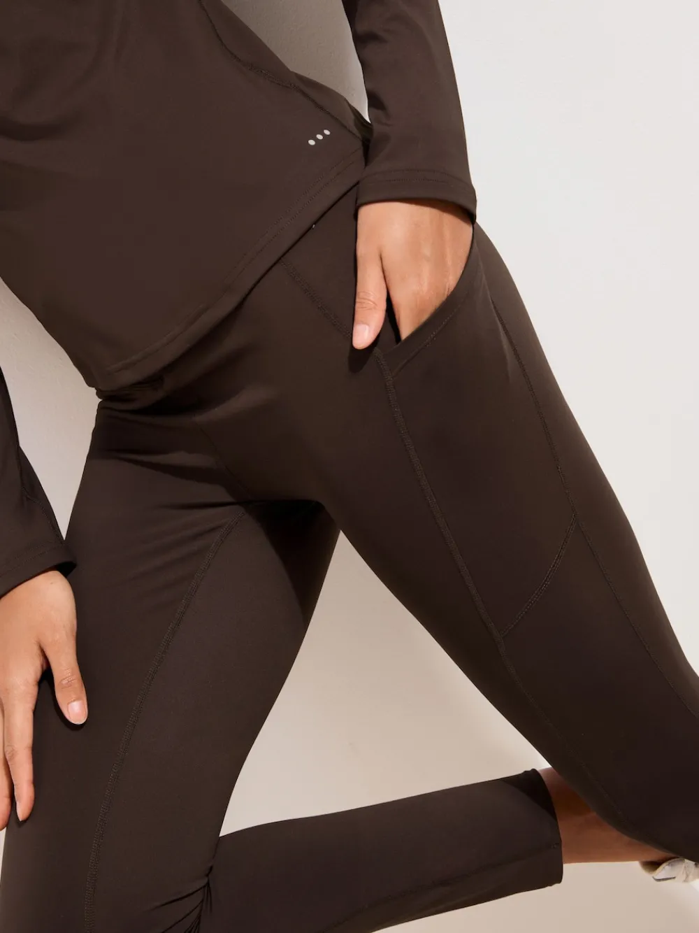 Supportive and sleek, these full-length leggings are designed with a high-rise waistband and convenient side pockets to keep your essentials close. Crafted from soft, stretchy, and breathable fabric, they deliver a sculpting fit that moves with you through workouts, yoga, or everyday wear. Pair with the matching top for the complete set.Features: Full-length design High-rise waistband for support and coverage Sculpting, body-hugging fit Side pockets for phone or essentials Additinal back pocket for storage Internal tie waistband Super soft, stretchy fabric Breathable, moisture whicking properties 78% polyester, 22% elastaan.