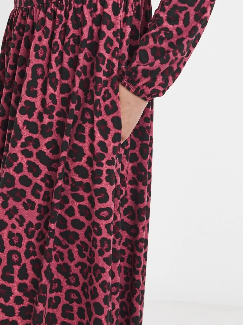 Feel amazing in our Soft Touch leopard print Long Sleeve Smock Dress designed in our stylish, burgundy leopard print. Features include long sleeves, a round neckline, and an elasticated waist to maximise your comfort. Falling at our maxi length of 50 inches. Standaardmaat van de zijkant van de nek tot de zoom 50″ / 127 cm. Machinewasbaar. 95% polyester, 5% elastaan.