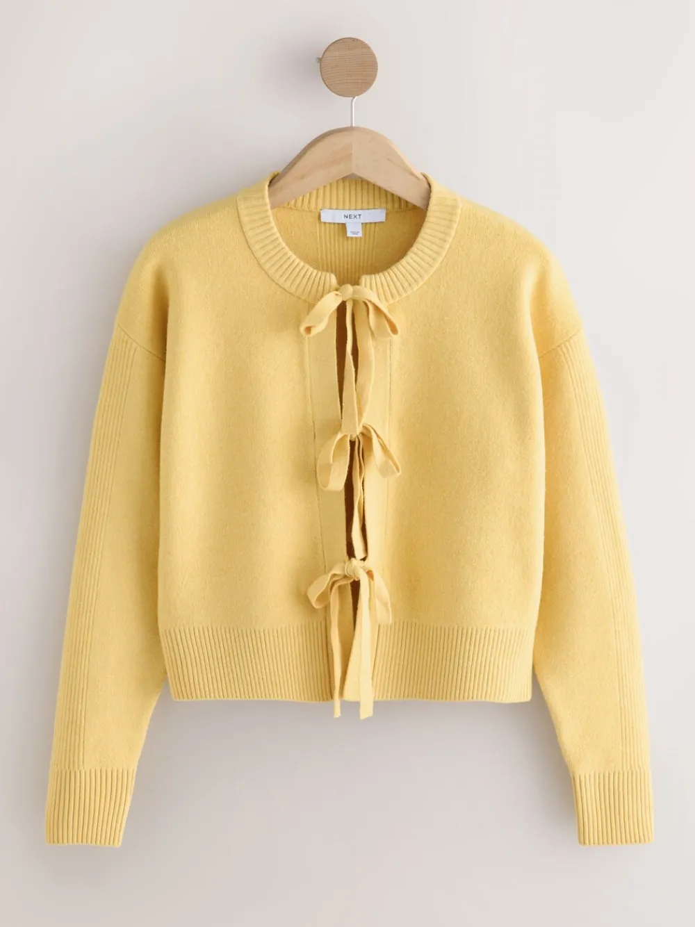 Embrace effortless charm with this knitted cardigan, crafted from a supersoft fabric blend with wool for a cosy feel. Featuring a trendy tie-front fastening and a clean, plain finish, this versatile layer offers a modern twist on the classic knit. It is the perfect piece for adding a touch of feminine sophistication to your everyday wardrobe. Super soft knitted fabric Contains wool Crew neckline Long sleeves Tie front fastening Plain design Machinewasbaar. 57% gerecycled polyester, 37% acryl, 3% elastaan, 3% wol. Onze tall collectie is ontworpen om te passen bij vrouwen van 5’10” en langer. Dit is verhoudingsgewijs vergroot door het lichaam, de benen en de mouwen om de perfecte pasvorm te bereiken. Verkrijgbaar in maat 8-20.