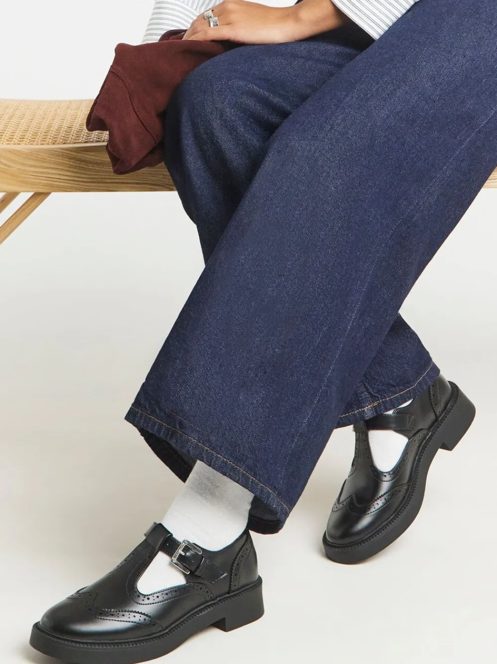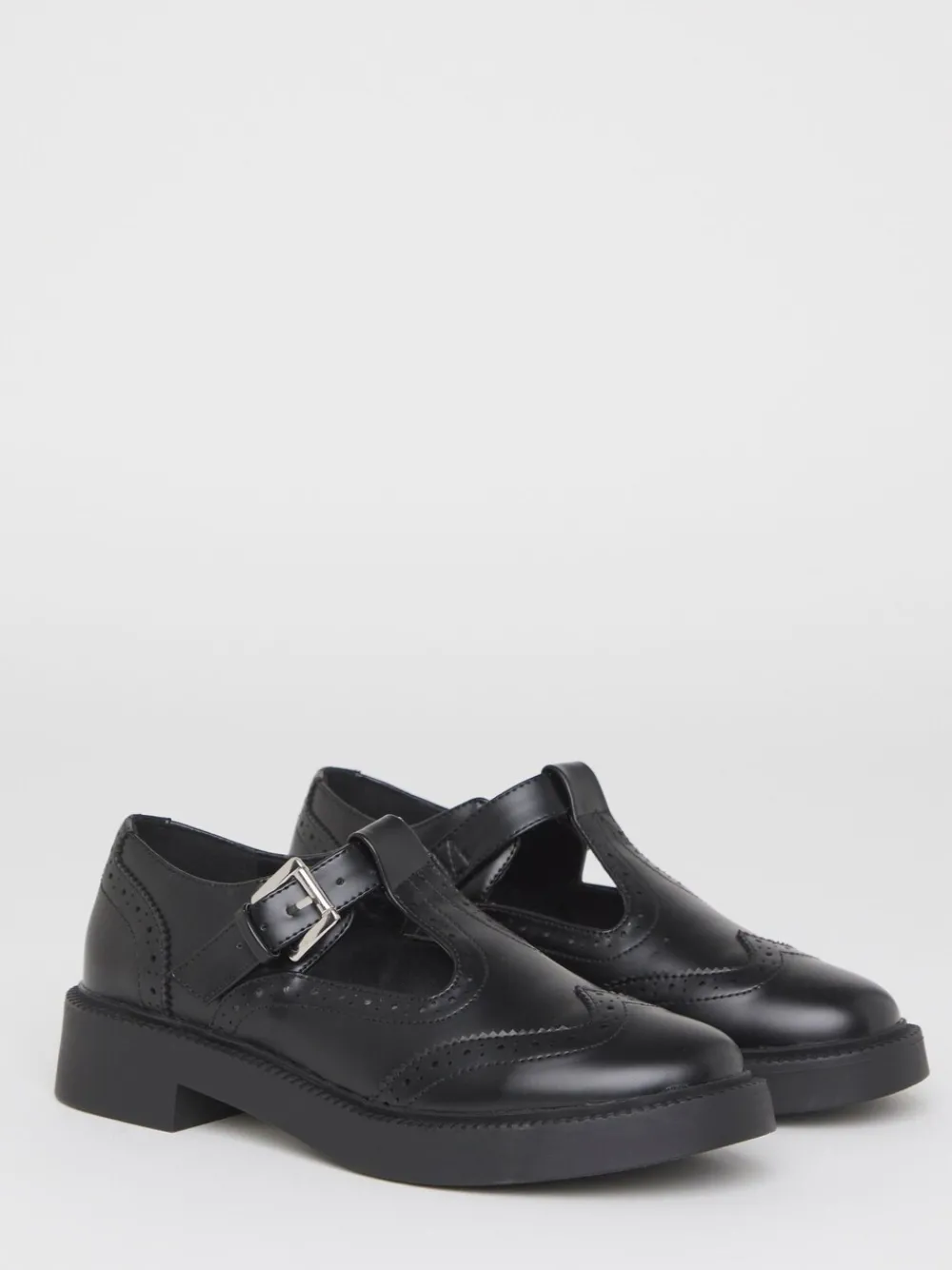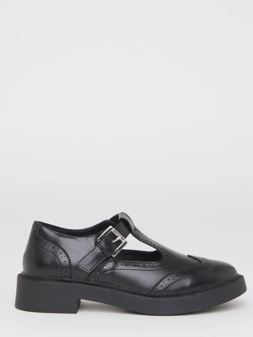 T bars are back in town. T bar Mary Jane strap Adjustable buckle Brogue detailing Rounded toe Hakhoogte 4 cm. Bovenwerk – 100% PU. Voetbed – 100% PU. Zool – 100% andere vezels.