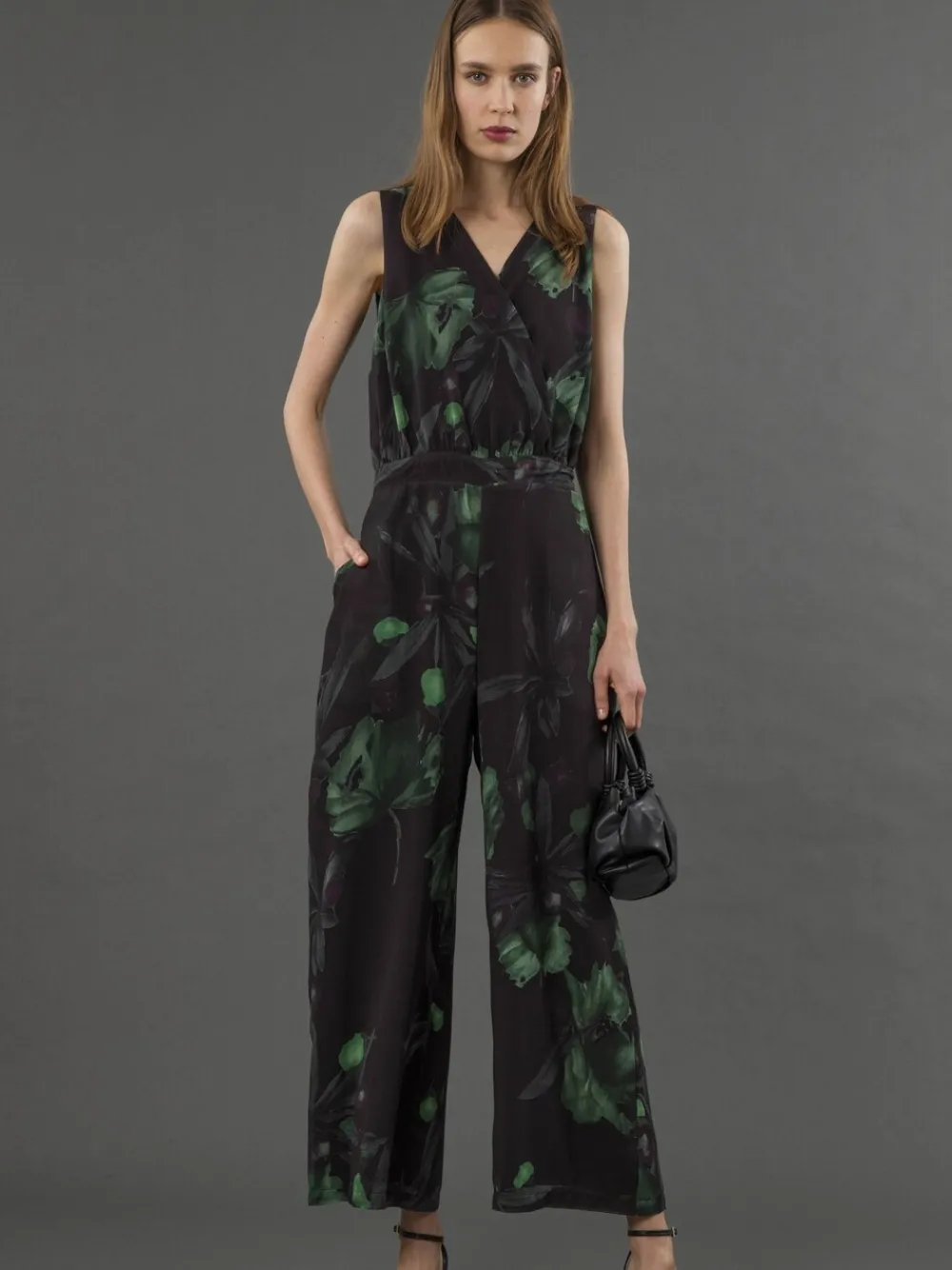Introducing the Taylor Jumpsuit, a vibrant summer essential. This full-length jumpsuit features our abstract Facade print in dirty pink and black, with its wide leg and elasticated back waist offering both comfort and style. The sleeveless design, wrap front, and V-neckline create a flattering silhouette. Complete with pockets and a fully lined interior for added comfort. Wear with sandals or high heels on a night out. Model wears size UK 10, length: 145 cm, chest circumference: 96 cm, inside leg: 75 cm. Standaard met binnenbeenlengte van 57″ / 145 cm. Alleen met de hand wassen. 100% polyester.