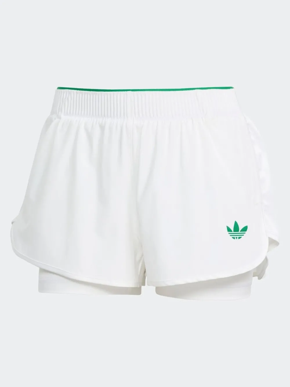 Part of an adidas collection created for the world s most famous tennis tournament, these shorts are designed to let you mix and match your own style without sacrificing performance. Their stretchy fabric shows off a classic Trefoil just above the hem, while integrated leggings add coverage and support. CLIMACOOL wicks and disperses sweat for cool, dry and distraction-free performance. CLIMACOOL helps you manage sweat with materials that wick and manage sweat quickly. Its fast-dry fibres give you a fresh-skin feel.Elastic waist 100% polyester.