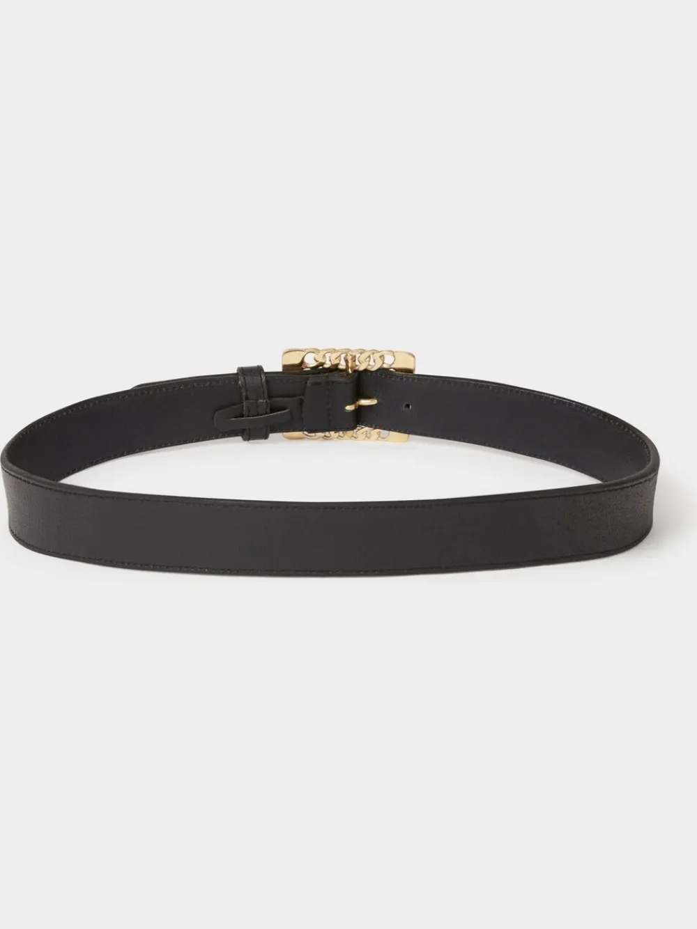 Crafted from premium Grainy Hide leather, the Chain Buckle Belt is a statement piece that features a gold chain link metal trim. A stylish accessory that adds a touch of personality and flair to any look. Its high-quality leather ensures long-lasting durability and adds a touch of sophisticated luxury to your wardrobe. 100% leer.