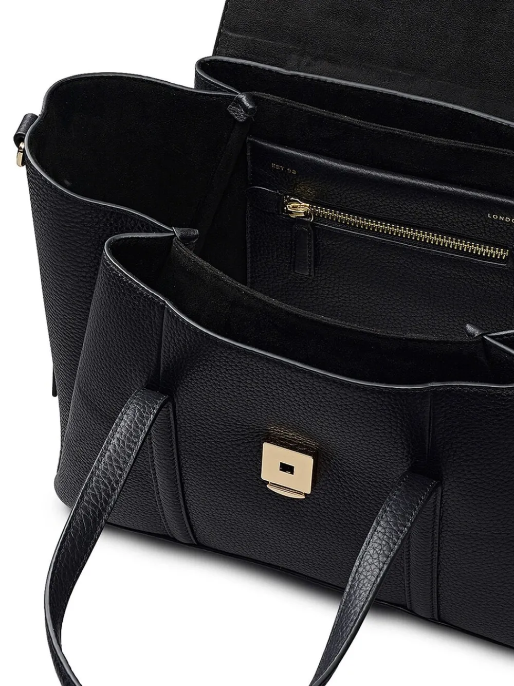Wij laten niets aan het toeval over. Daarom creëren we doordachte ontwerpen, zoals de schoudertas The Chancery, gemaakt van het beste zachtnerfleer. Slim van binnen en van buiten, met een nette vouwconstructie, drie compartimenten en een veilige uitsparing voor de klep. Deze tas brengt luxe in het dagelijks leven. Nerfleer. Slanke, gevoerde handgrepen. Uitgesneden flap past rond de handgrepen. Sluiting met drukknop. Voering van gelijmd imitatiesuède. Drie compartimenten. Binnenzak met rits. Gebogen logorand. Wordt geleverd met stofzak. Buitenkant 100% leer. Voering 65% katoen, 35% polyester.