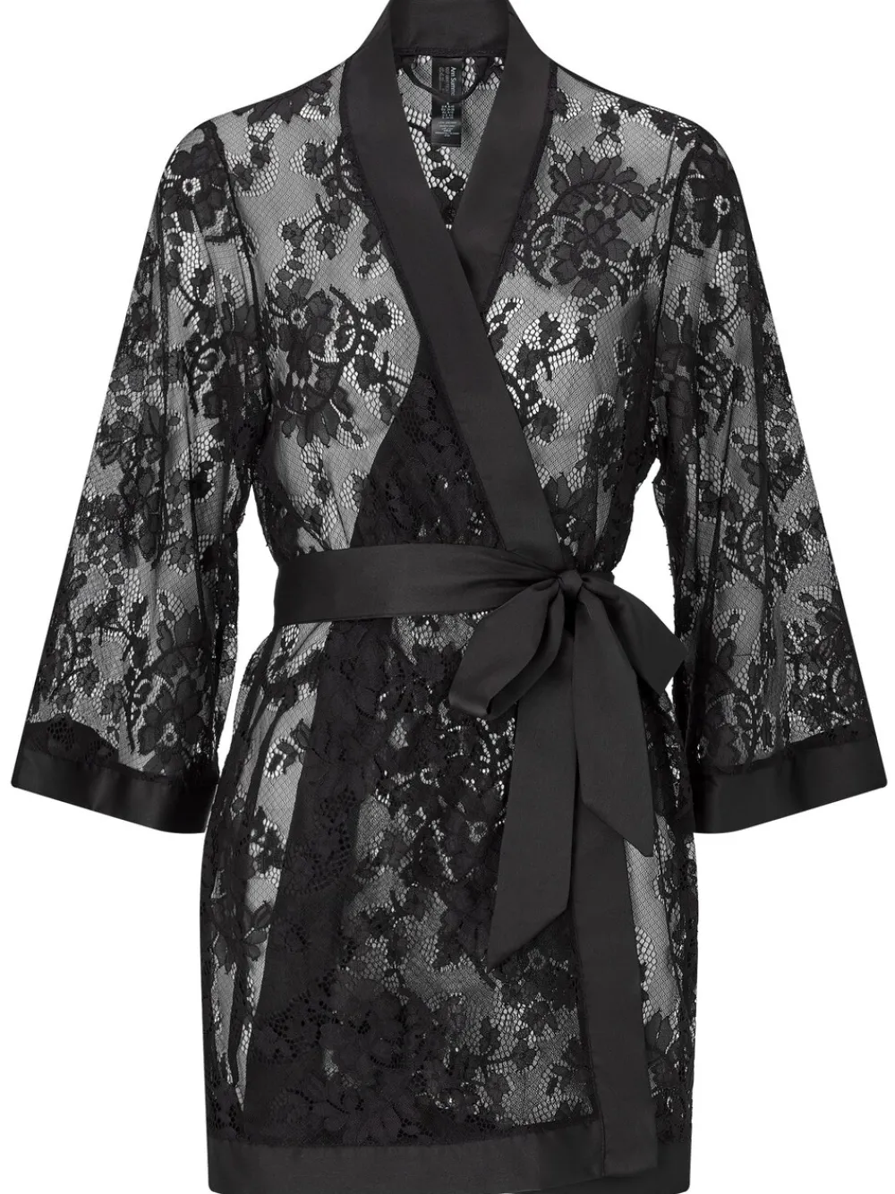 Verleid moeiteloos in The Dark Hours Robe. Elegante bloemenkant is afgezet met weelderig satijn voor een luxueuze afwerking. X Klein = 4-6 Klein = 8-10 Medium = 12-14 Groot = 16-18 X Groot = 20-22 XX-Groot = 22-24 Machinewasbaar. 100% nylon. Waarschuwing: weg houden bij vuur en vlammen.