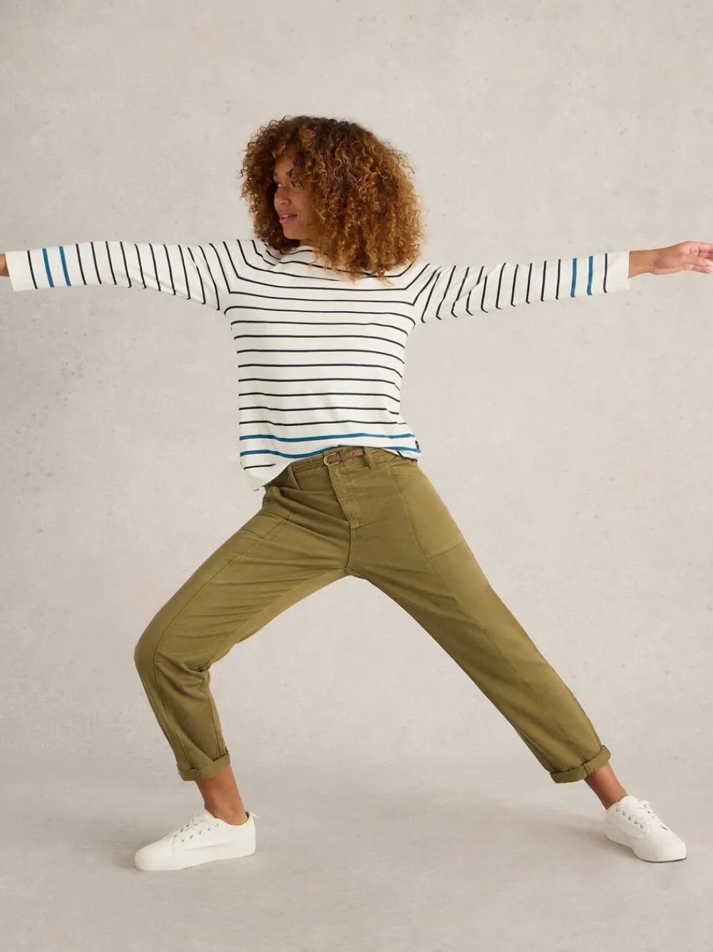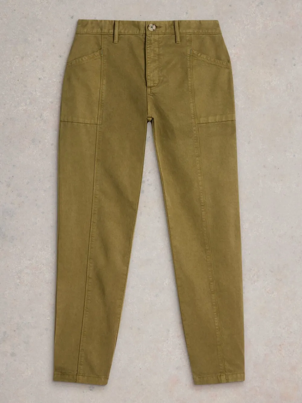 Versmalde broek met praktische zakken. Maak plaats voor jeans, er is een nieuwe, veelzijdige broek in de stad. Standaard met binnenbeenlengte van 17″ / 43 cm. Long binnenbeenlengte 19″ / 48cm. Machinewasbaar. 51% katoen, 49% TENCEL™ lyocell.