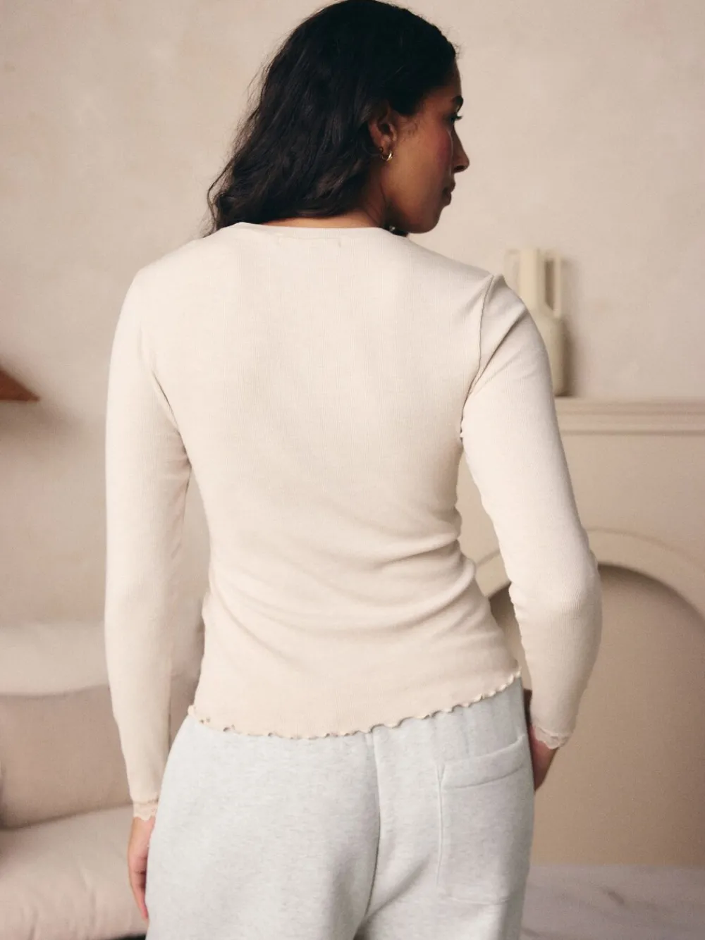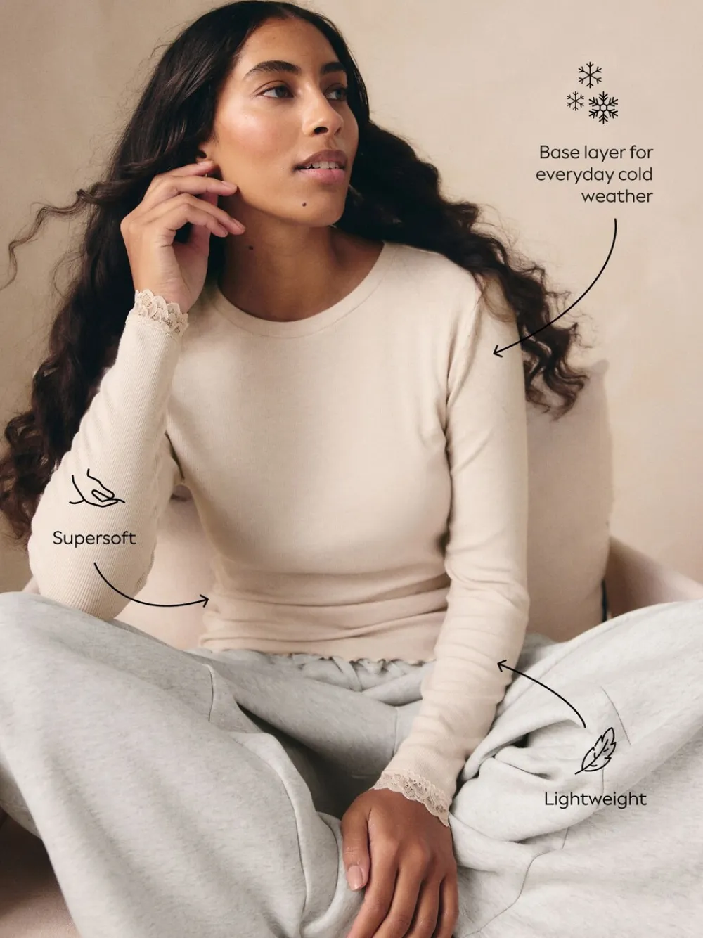 Onze lichtgewicht thermocollectie is de perfecte base laag voor de wintermaanden. Een eenvoudige oplossing voor koud weer. De thermische eigenschappen maken het ideaal om in laagjes te dragen en u warm te houden. Het voelt superzacht aan en de ademende stof biedt comfort. Deze Crèmekleurige top met lange mouwen is afgewerkt met kant voor een extra detail en kan onder je kleding worden gedragen, of op zichzelf in een Jeans voor een trendy outfit. Modal rib base laag Lichtgewicht en zacht Dagelijkse oplossing voor koud weer Machinewasbaar. 95% TENCEL™ modal, 5% elastaan. Artikelen met het curve-logo zijn verkrijgbaar in de maten 18 en groter.