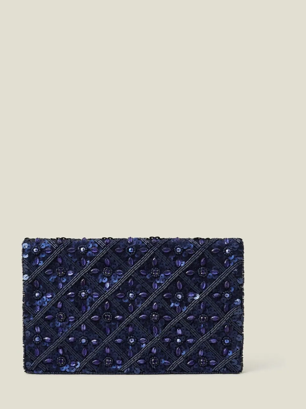 Deze clutch is geschikt voor extra speciale gelegenheden en is met de hand versierd met kralen in een sierlijk ontwerp. De portemonnee sluit met een magnetische drukknoop en heeft een binnenvak met rits voor uw munten, pasjes en briefgeld. Stop de kettingriem in de tas en je hebt de tas als clutch, of trek hem over je schouder zodat je je handen vrij hebt om de tafel te gebruiken. Breedte 24 cm Diepte 16 cm Buitenkant 100% polyester. Voering 100% polyester.