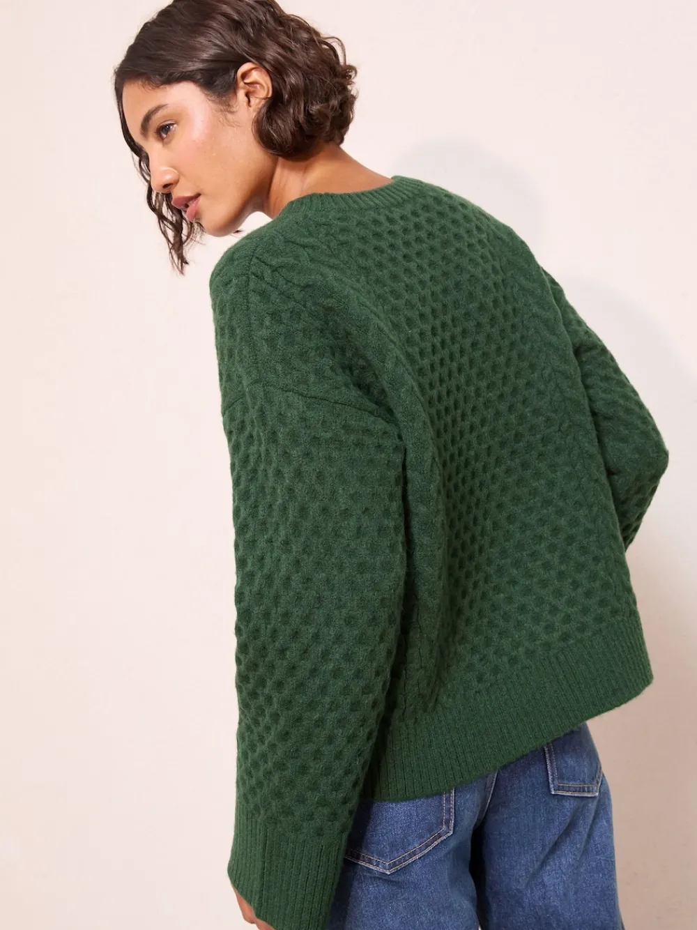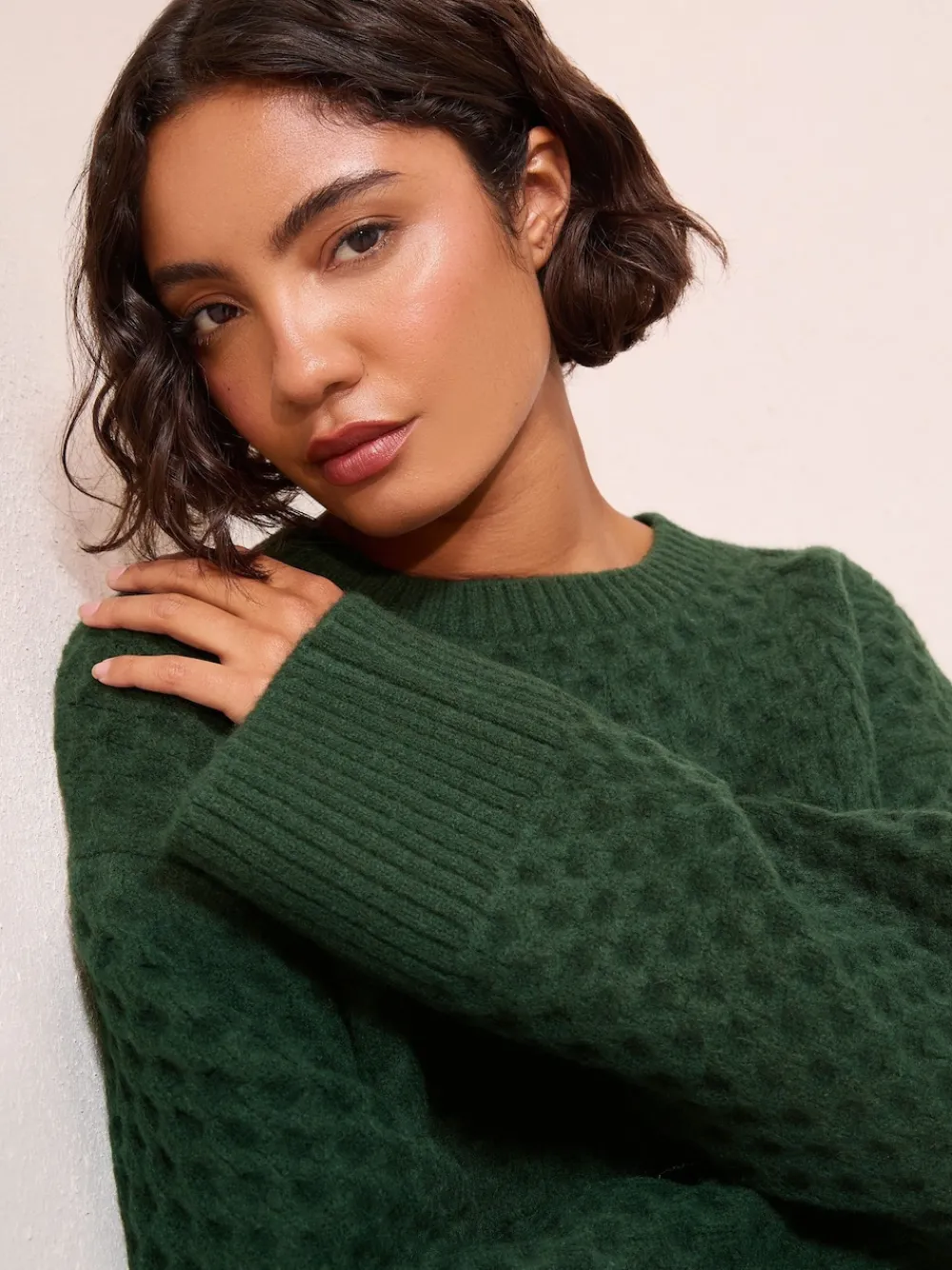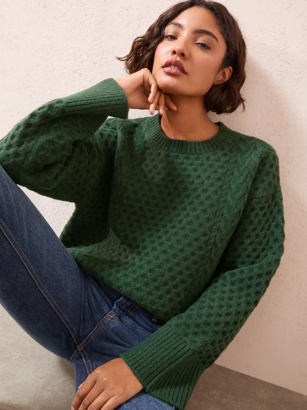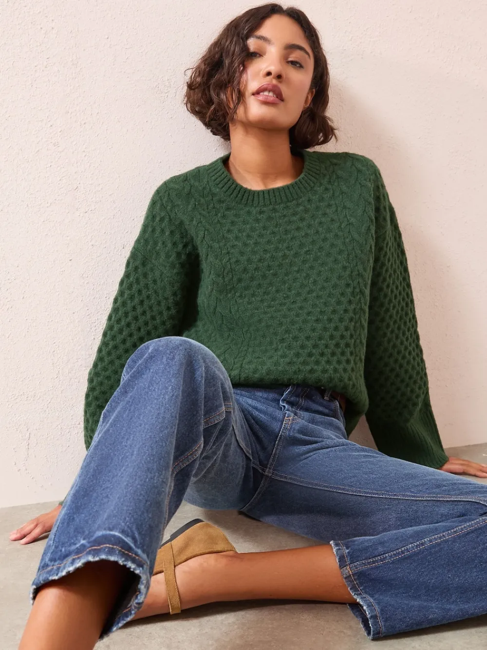 Onze opvallende Boxy-trui. Combineer dit kledingstuk met onze PU Broeken voor de perfecte look voor koud weer. Met: Boxy Style Honeycomb Design Heavyweight Yarn. Het model draagt maat 8 en is 5ft 9”. 62% acryl, 30% gerecycled polyester, 5% wol, 3% elastaan.
