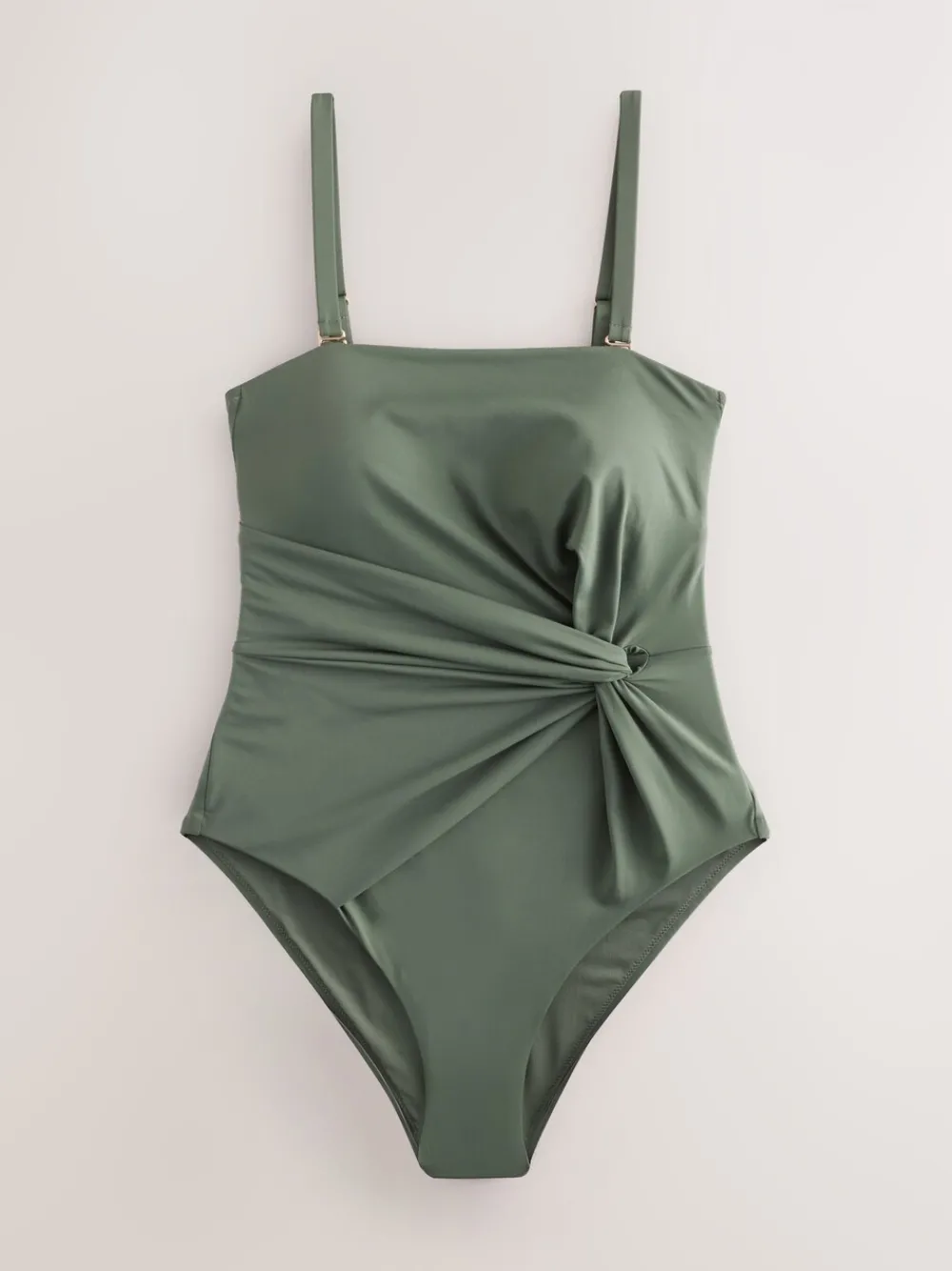 Ons bandeau-badpak met corrigerend effect is super Flatterend en toch ondersteunend. Het zwempak is gemaakt van corrigerend gaas, zodat jij je deze zomer op het strand of in het zwembad op je best voelt. Het Pak is voorzien van verstelbare en afneembare bandjes, zodat u het kunt dragen zoals u wilt. Het pak heeft ook gedraaide details aan de zijkant en is afgewerkt met Goudkleurig hardware. Buikcontrole Verwijderbare bandjes Goud hardware Bandeau-stijl Hoofdmateriaal 85% nylon, 15% LYCRA® XTRA LIFE™ elastaan. Voering: 92% gerecycled polyester, 8% elastaan. Mesh: 88% nylon, 12% elastaan. Cupvoering 100% polyester. Cup 100% polyurethaan. Artikelen met het curve-logo zijn verkrijgbaar in de maten 18 en groter. Onze tall collectie is ontworpen om te passen bij vrouwen van 5’10” en langer. Dit is verhoudingsgewijs vergroot door het lichaam, de benen en de mouwen om de perfecte pasvorm te bereiken. Verkrijgbaar in de maten 8-20., LYCRA® XTRA LIFE™-vezel zorgt dat je ondergoed er langer als nieuw blijft uitzien met comfort- en pasvormbehoud. Dit innovatieve stretchmateriaal weegt weinig, ademt en behoudt zijn vorm bij telkens weer dragen en wassen. Deze stof voldoet aan BS EN 13758. – 1, zorgt voor bescherming tegen ultraviolette zonnestraling. Het is onafhankelijk getest en heeft een UPF-classificatie van 50+ gekregen, wat meer dan 97,5% van de UV-stralen blokkeert. Belangrijk advies: • Blootstelling aan de zon veroorzaakt huidbeschadiging • Alleen bedekte gebieden zijn beschermd • Gebruik altijd een zonnebrandcrème met een hoge beschermingsfactor voor gebieden van de huid die bloot worden gesteld aan de zon • De bescherming van deze stof kan worden verminderd bij gebruik of als het uitgerekt of nat is • Spoel altijd na elk gebruik af met zoet water • De stof biedt UVA- en UVB-bescherming tegen de zon.