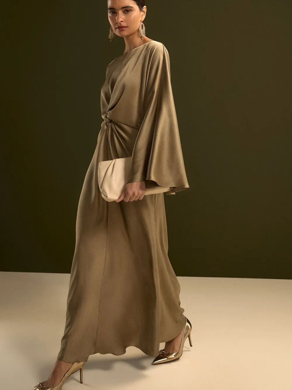 – Twist Front Long Sleeve Satin Maxi Dress*Next Clearance
