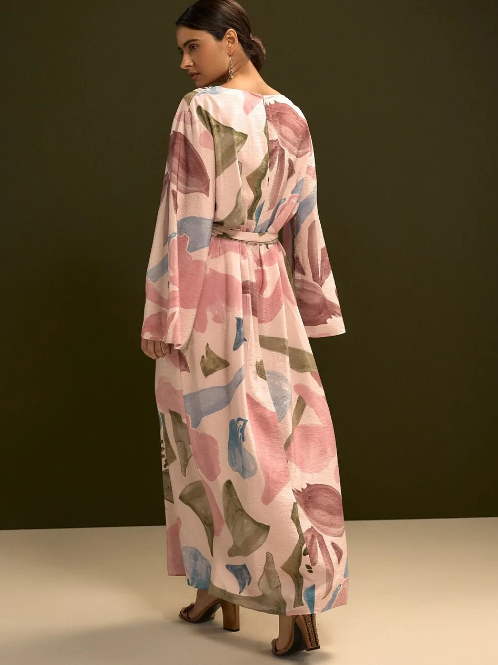Unlock effortlessly chic resort-style glamour in this flowing maxi kaftan. The soft, draped fabric and relaxed silhouette ensure all-day comfort, while the striking print is perfect for Eid dressing or your next holiday vacation. Dress Maxi V-Neck Kaftan Sleeves Print Standaardmaat van de zijkant van de nek tot de zoom 55″ / 140 cm. Machinewasbaar. 84% Livaeco™-viscose, 16% nylon.