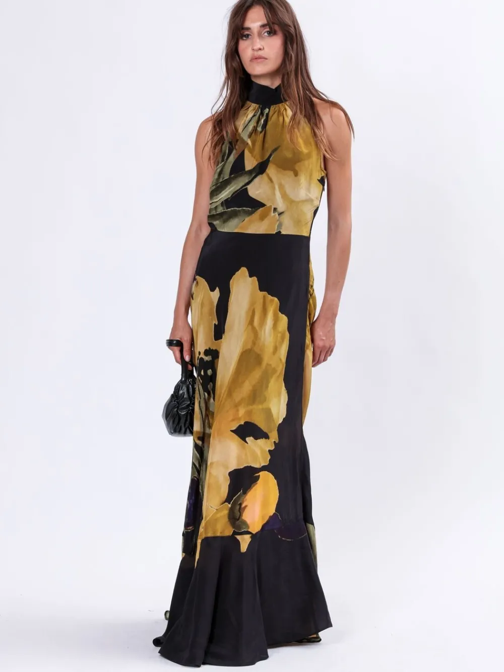 De Valeria maxi-jurk is een prachtige stijl met een halterjurk met lange strikbanden, gemaakt van veganistische zijde. Doordat de stof schuin is gesneden, valt het silhouet prachtig en accentueert het uw figuur met moeiteloze charme. Dit mouwloze shirtje is versierd met onze Prime bloemenprint in gele tinten en straalt romantiek en verfijning uit. Of u nu een bruiloft bijwoont of exotische bestemmingen gaat verkennen, de Valeria maxi-jurk zal ongetwijfeld harten veroveren met zijn tijdloze schoonheid en aantrekkingskracht. Het model draagt maat 10. Lengte vanaf de bovenkant: 146.5 cm. Stoom dit kledingstuk lichtjes voordat u het aantrekt, aangezien de stof tijdens de verzending gekreukt kan zijn. Standaard van zijkant van de hals tot de zoom 57.5″ / 146,5 cm. Alleen chemisch reinigen. Schelp 100% cupro. Voering 100% viscose.