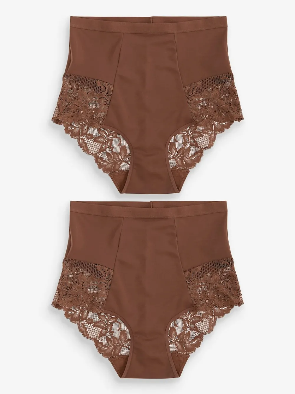 Deze twee – Verpakking met corrigerend Chocolate Nude-ondergoed met hoge taille voor een comfortabele en flatterende pasvorm onder elke outfit. De slip is voorzien van zacht kant voor een extra vrouwelijk detail. Pakket van twee Kanten afwerking detail stretchy stof Elastische tailleband Hoge taille Buikcorrectie Katoenen kruisje Machinewasbaar. 2 x slips hoofdbestanddeel 68% nylon, 32% elastaan. Inzetstuk 100% katoen. Artikelen met het curve-logo zijn verkrijgbaar in de maten 18 en groter.