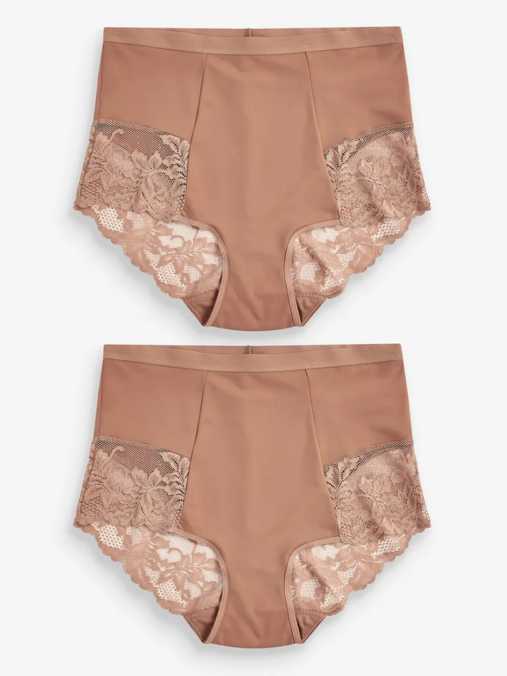 Deze set van twee corrigerende Caramel Huidskleur slips heeft een Hoge taille voor een comfortabele en Flatterende pasvorm onder elke outfit en is voorzien van zacht kant voor een extra vrouwelijk detail. Pakket van twee Kanten afwerking detail stretchy stof Elastische tailleband Hoge taille Buikcorrectie Katoenen kruisje Machinewasbaar. 2 x slips hoofdbestanddeel 74% nylon, 26% elastaan. Kant 84% nylon, 16% elastaan. Kruisje 100% katoen. Artikelen met het curve-logo zijn verkrijgbaar in de maten 18 en groter.