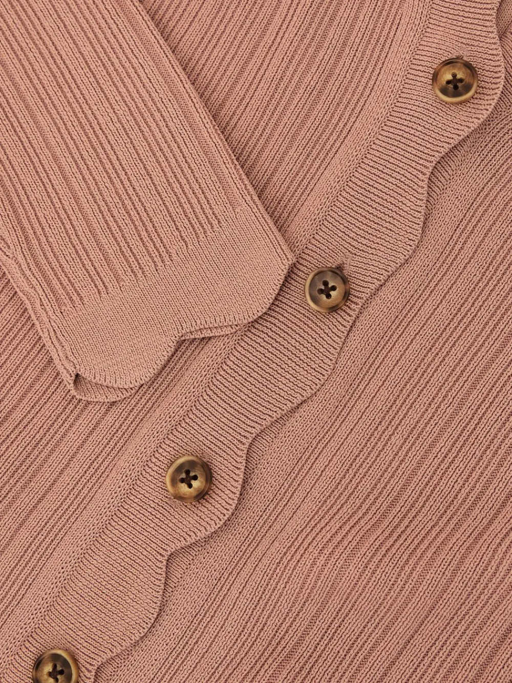 The Vinny cardigan is rib-knitted to create a unique textured effect and finished with a scallop-edge trim. It features a V-neckline, long sleeves and a button-through front. Rib-knit texture Scallop edge V-neckline Long sleeves Front buttons Alleen met de hand wassen. 62% viscose, 38% nylon.