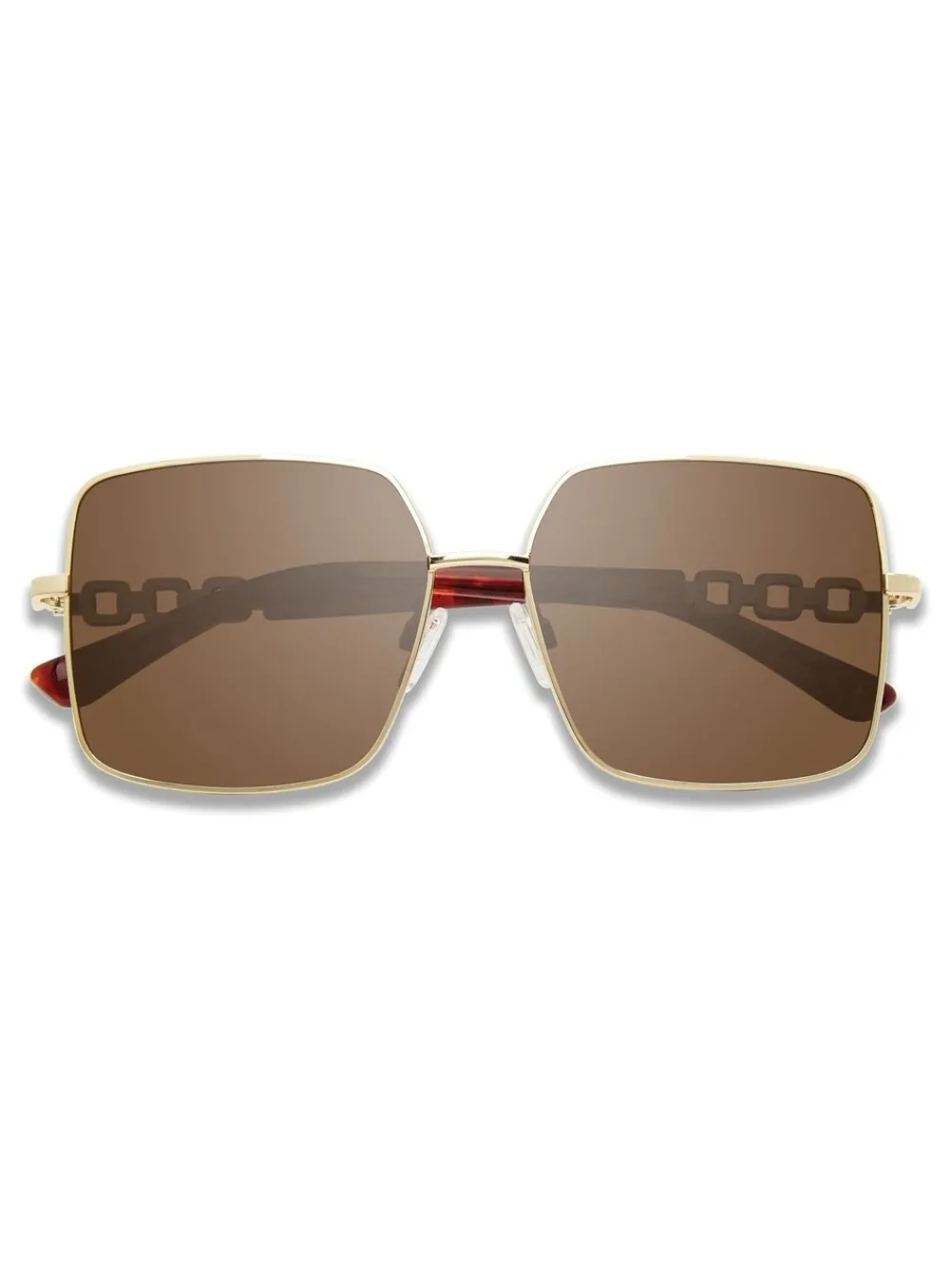 Oversized zonnebril met unieke details op de pootjes Gepolariseerde lenzen 100% metaal.