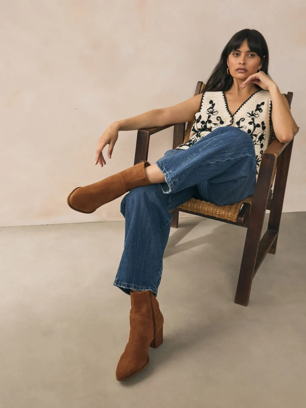 Elevate your everyday style with these smart casual boots. The flattering almond toe and comfortable block heel create a chic and versatile silhouette. The inside zip ensures a seamless fit, perfect for day-to-night wear. Almond toe Block heel Inside zip fastening Forever Comfort® cushioned footbed Hakhoogte 7,5 cm. Bovenwerk – leer; voering en voetbed – Andere materialen, textiel, zool – Andere materialen.