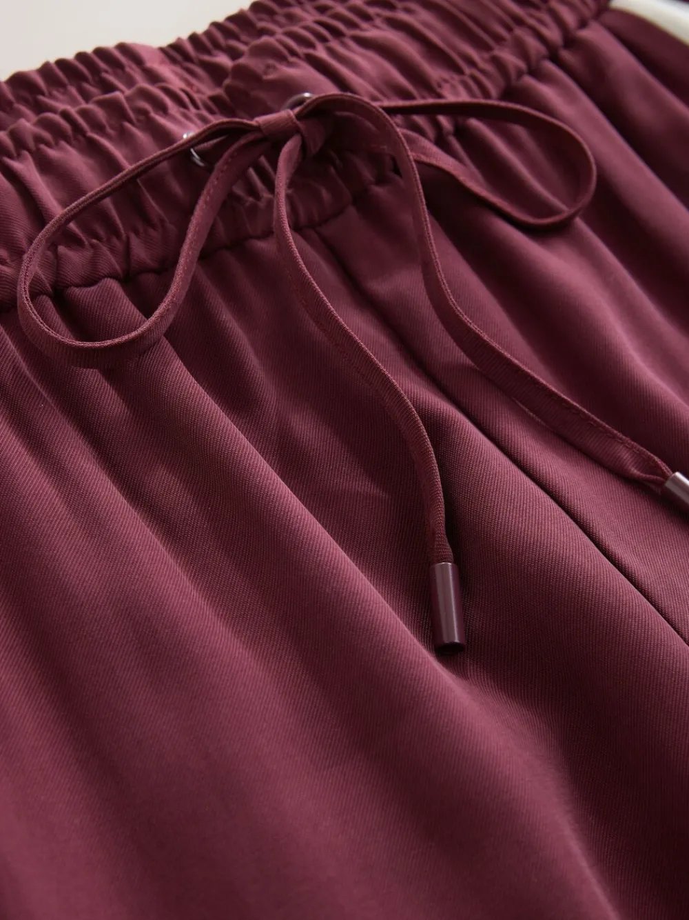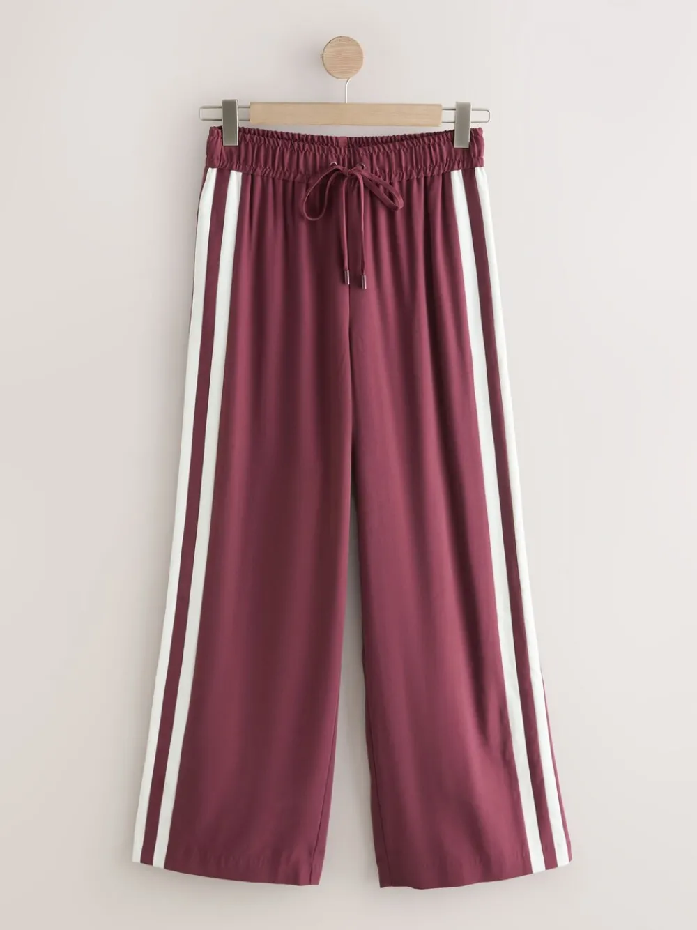 Achieve comfortable sophistication with these wide-leg trousers. Featuring pull-on jogger styling in a soft, smart fabric, the white side stripe detail and drawstring waist add a contemporary finish. Perfect for elevated casual wear. Wide leg Side stripe detail Drawstring waist Pull-on style Short voor binnenbeenlengte 27″ / 69cm. Regular voor binnenbeenlengte 29″ / 74cm. Lang genoeg voor binnenbeenlengte 31″ / 79cm. XL Tall voor binnenbeenlengte 33″ / 84cm. Machinewasbaar. 92% LENZING™ ECOVERO™ viscose, 8% gerecycled polyester. Artikelen met het curve-logo zijn verkrijgbaar in de maten 18 en groter. Onze tall collectie is ontworpen om te passen bij vrouwen van 5’10” en langer. Dit is verhoudingsgewijs vergroot door het lichaam, de benen en de mouwen om de perfecte pasvorm te bereiken. Verkrijgbaar in maat 8-20.