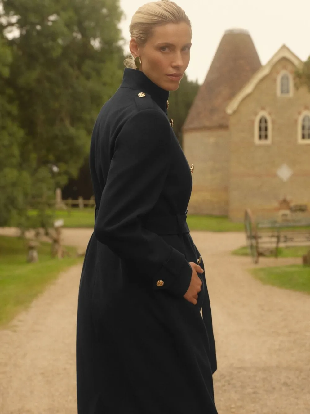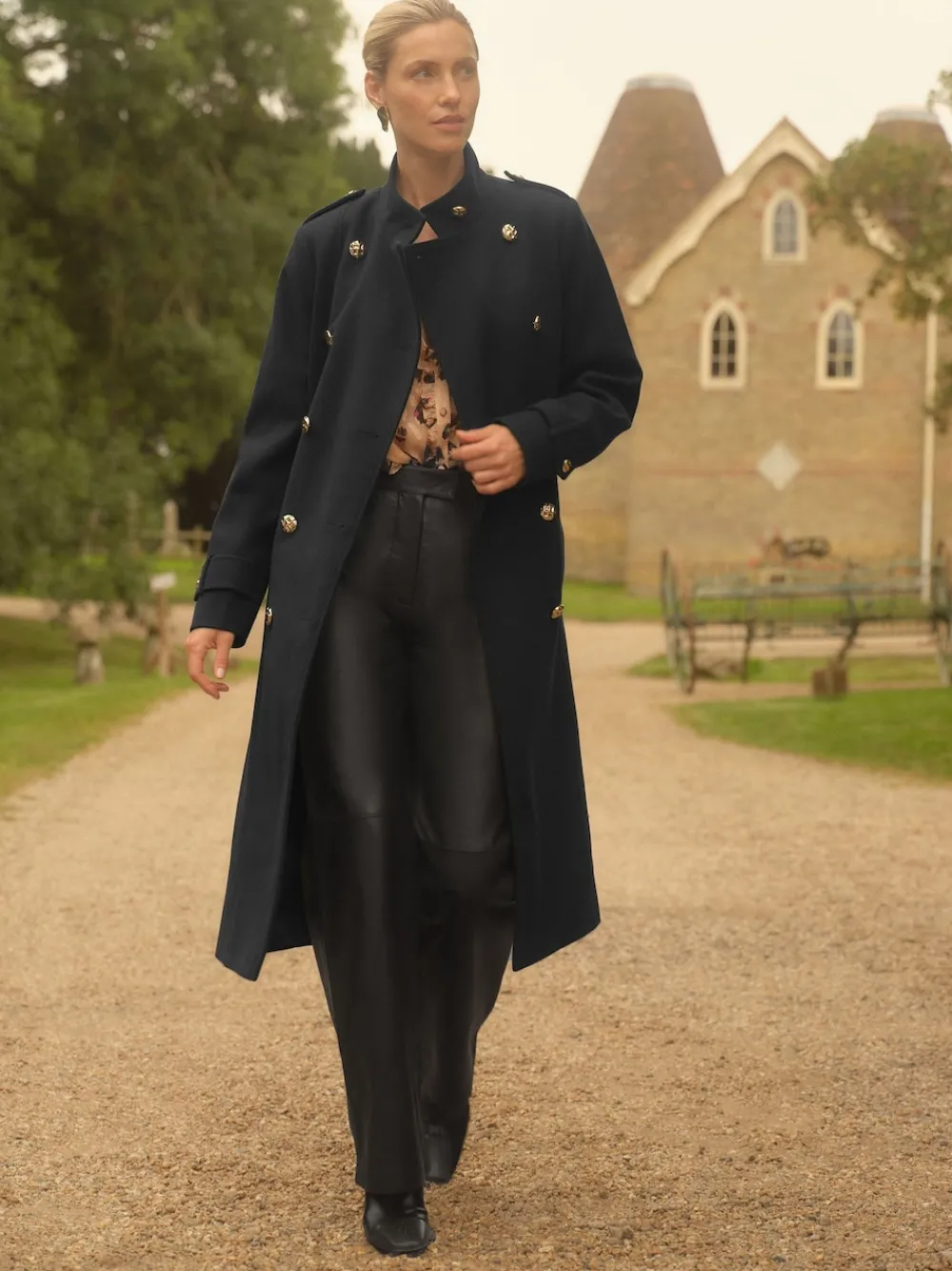 Step out in timeless elegance with the Love & Roses Black Funnel Neck Wrap Coat. This stunning midi-length piece is designed to elevate any outfit with its sophisticated, military-inspired detailing and flattering silhouette. It features a chic funnel neck and double-breasted front adorned with eye-catching gold-tone buttons, complemented by smart epaulette shoulder details. The coat’s luxurious shape is defined by a cinching wrap belt, allowing you to tailor the fit perfectly for a polished, hourglass look. Crafted in a versatile and classic black, this coat is the perfect investment to keep you warm and stylish throughout the colder seasons. Funnel neck Midi length Wrap belt detail Hoofdbestanddeel 100% polyester. Voering 100% polyester.