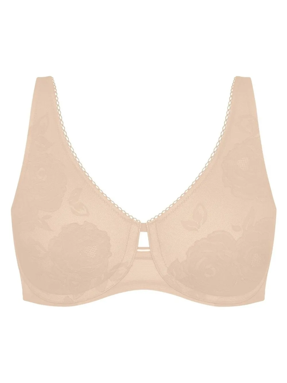 Vrouwelijke en elegante look. Gladde, lichte en elegante decoratieve kant, plat voor een onzichtbare look onder kleding. Minimaliserende stof voor een perfecte pasvorm en functie. Bredere banden voor extra comfort en ondersteuning. Alleen met de hand wassen. 82% Nylon, 18% elasthaan.