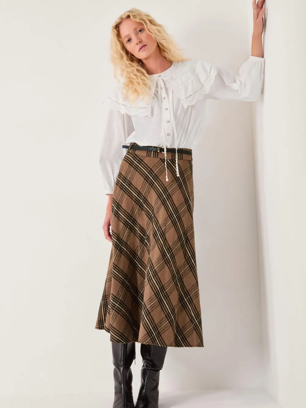 Work outfit = check! Introducing your new favourite autumn piece with this warm-toned check skirt. Pair it with a flowy blouse and boots for the perfect low-effort, high-impact in-office fit that everyone will be admiring! Machinewasbaar. 100% katoen.