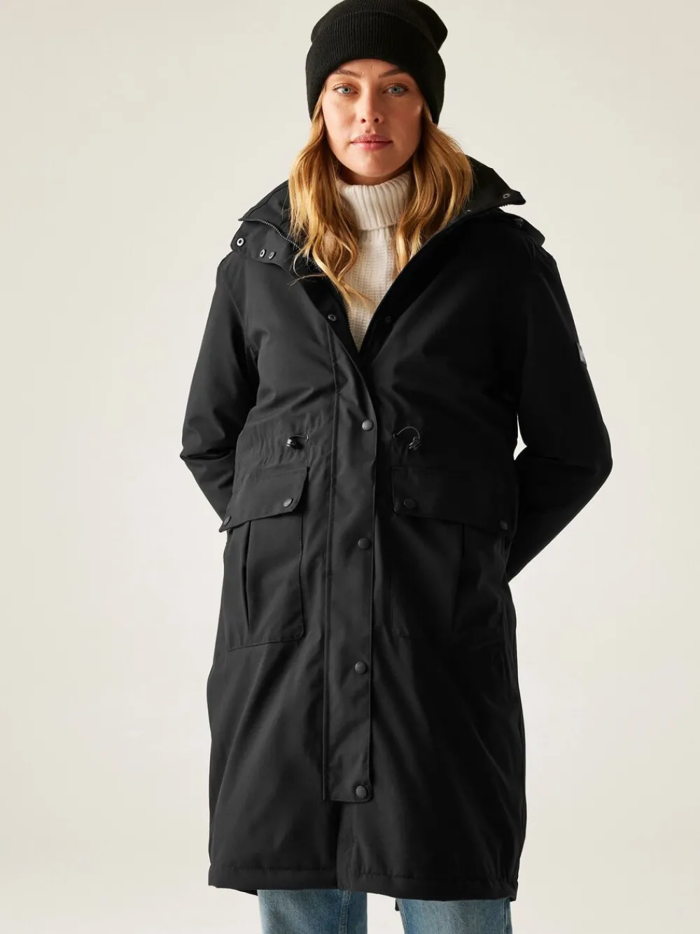 The Yannta Long-Length women’s jacket from Regatta combines elegance with practicality. Made with waterproof Isotex 15,000 fabric and Thermoguard insulation, it provides warmth and protection in any weather. An adjustable waist enhances the fit, while patch pockets and branded snaps add functionality. Stylish and versatile, it’s perfect for casual strolls or everyday wear in changing conditions. Machinewasbaar. 100% polyester.