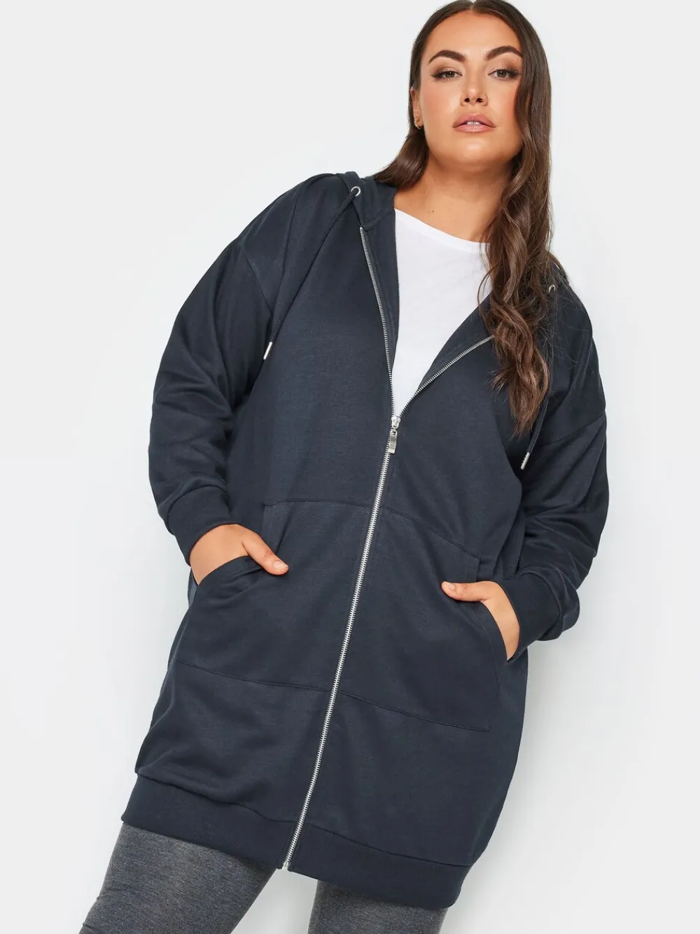 – Yours – Curve – Lange hoody met rits*Yours Curve Outlet