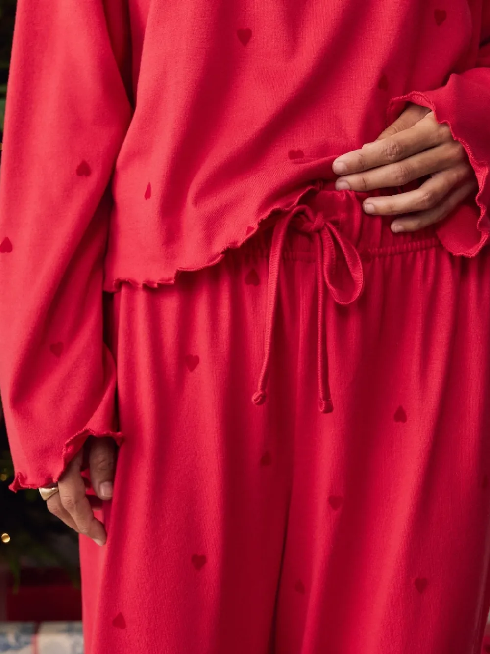 Ontspan in hemels comfort met deze Rode Ster Zachte pyjama met Lange mouwen. Deze Set is ontworpen om Heerlijk zacht en comfortabel te zijn, Craft van een levendige Rood stof met een subtiele sterrenPrint. Het bovenstuk heeft een comfortabele, slouchy pasvorm en Lange mouwen, terwijl de Broeken met Wijde pijpen een comfortabele elastische tailleband met trekkoord heeft. Zowel de top als de broek zijn afgewerkt met een delicate, vrouwelijke krulrand langs de zomen. Daarmee is dit de ultieme set voor een rustgevende avond. 2 Pieces Set Heerlijk zacht en comfortabel Elastische taille Machinewasbaar. Pyjamatop en pyjamabroek van 95% gerecycled polyester, 5% elastaan. Waarschuwing: Blijf uit de buurt van vuur en vlammen. Onze tall collectie is ontworpen om te passen bij vrouwen van 5’10” en langer. Dit is verhoudingsgewijs vergroot door het lichaam, de benen en de mouwen om de perfecte pasvorm te bereiken. Verkrijgbaar in maat 8-20.