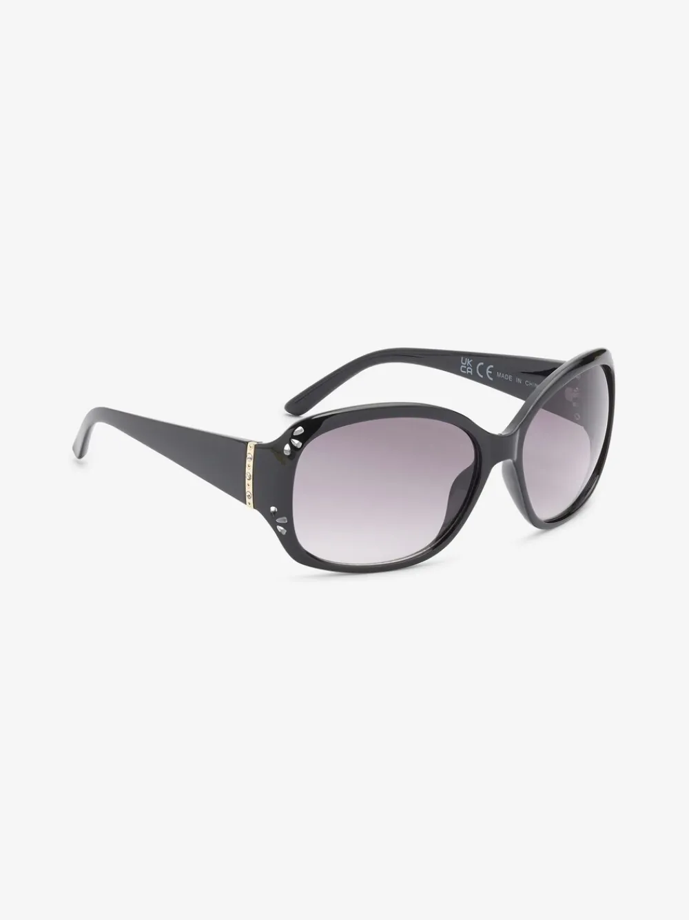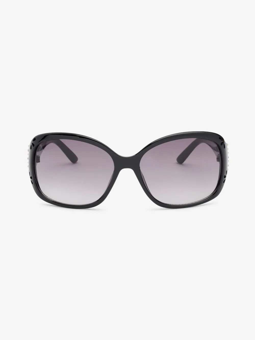 Ombré-effect lenzen in zwart met filigraan details op de hoeken. 100% gerecycled polycarbonaat.