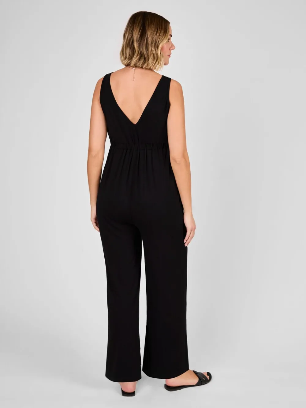 Say goodbye to the little black dress, and hello to the oh so comfy black jumpsuit! Feel dressed up on balmy nights with this piece, crafted from super soft and stretchy jersey, with a flattering v-neck and easy breezy wide leg design. Thoughtfully crafted in a stretch fabrication, this piece offers both comfort and style through every stage of motherhood. This irresistible maternity must-have will have you looking and feeling your best this summer. Black jersey jumpsuit V-neck Wide leg Machine washable 95% viscose, 5% elastaan.