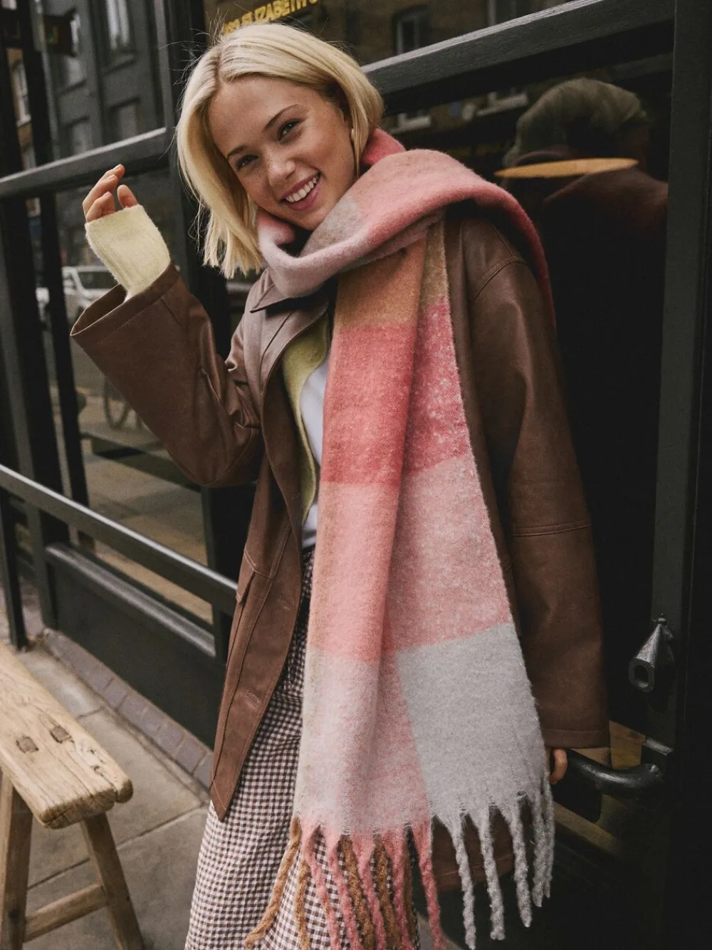 Wikkel uzelf in stijl met deze levendige, kleurrijke deken sjaal. De zachte, zware geborstelde stof en de oversized pasvorm zorgen voor warmte en comfort op koelere dagen. Met een klassiek Ruitpatroon en speelse franjeranden is dit het perfecte accessoire om een vleugje kleur toe te voegen aan je herfst- en winterlooks. Zware, geborstelde stof Ruitpatroon Franjeranden Oversized pasvorm 100% gerecycled polyester.