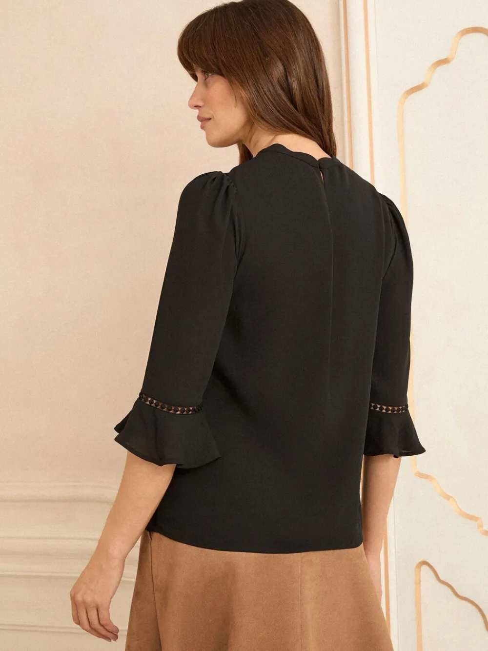 Zwart – 3/4 blouse met uitlopende mouwen*Love & Roses Hot
