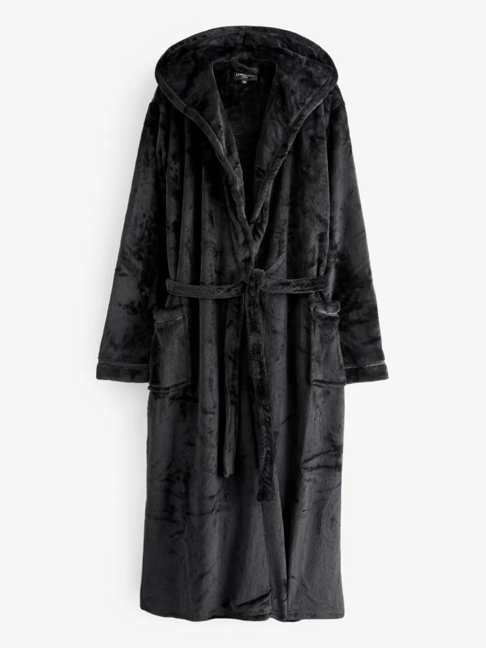 Zwart – Christmas Ribbon Trim Luxury Fleece Hooded Maxi Robe*Loungeable Sale