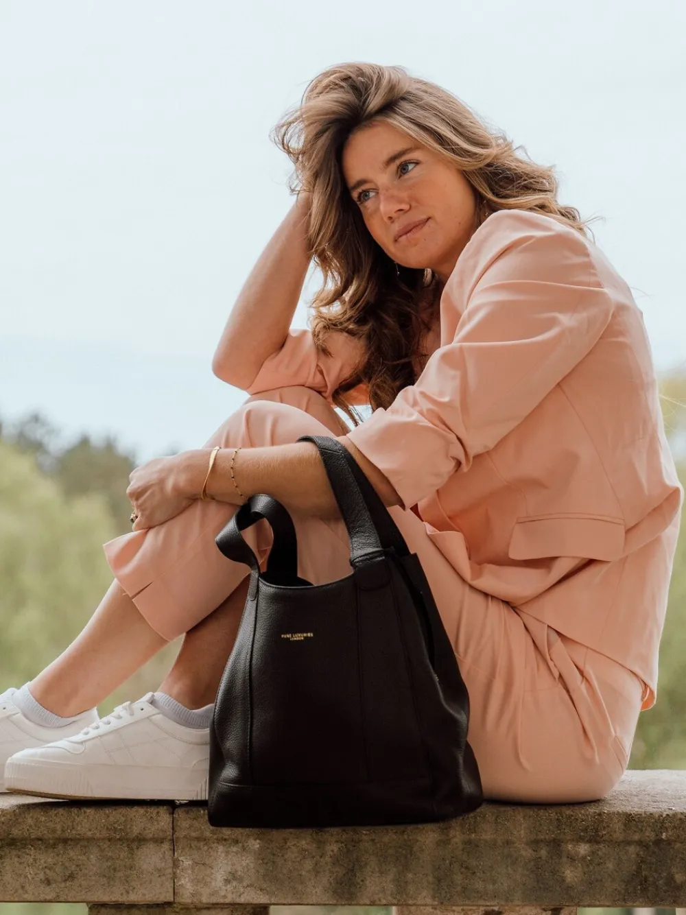 Colette Handbag Part of the Pure Luxuries Collection, featuring leather, free from polyester linings. The ‘Colette’ handbag is handcrafted from beautifully supple leather with a luxurious pebble grain finish. Spacious Main Compartment: Unlined with an exposed, soft-to-touch leather interior Slip Pockets: Two cotton-lined slip pockets, perfect for a smartphone and keys Matching Leather Carry Handles: Designed for easy carrying Pure Luxuries Leather Charm & Logo: An elegant finishing touch Hoogte 27 cm Breedte 28 cm Diepte 11 cm Buitenkant 100% leer. Voering 100% katoen.