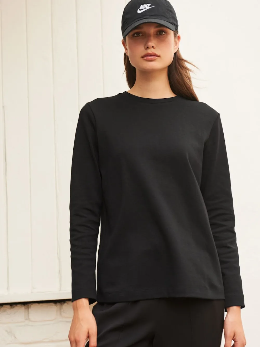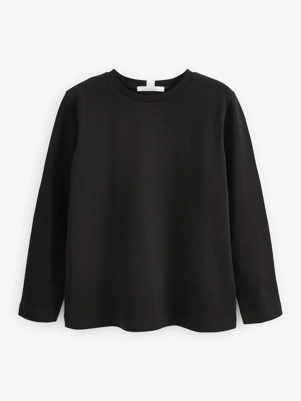 A style staple, our heavyweight long-sleeved black T-Shirt will take you from day to night effortlessly. Designed with long sleeves and a crew neck, this pure cotton top is made with a heavyweight feel for added warmth. Wear it as a casual piece during the day or pair it with a leather skirt for a more dressier occasion. Long sleeves Crew neck Regular fit Cotton rich Heavyweight Machinewasbaar. 95% Katoen, 5% elastaan. Artikelen met het curve-logo zijn verkrijgbaar in de maten 18 en groter.