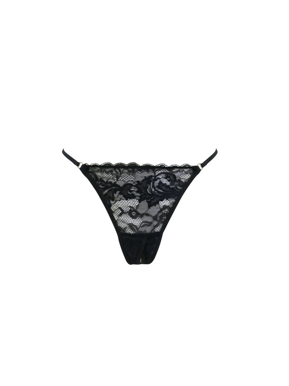 Zet de slaapkamer in vuur en vlam met deze sexy string met hoge taille en open kruis. De superzwarte high-waist kanten string met een sexy kruisje en kwastje zorgt ervoor dat je benen er fantastisch uitzien. Maak de look compleet met Beha’s uit onze prachtige For Your Eyes Only-collectie. Alleen met de hand wassen. 90% Nylon, 10% elasthaan.