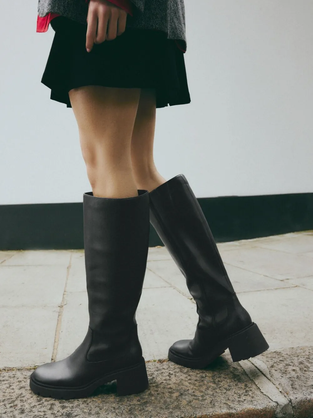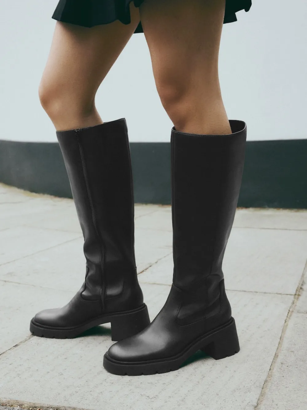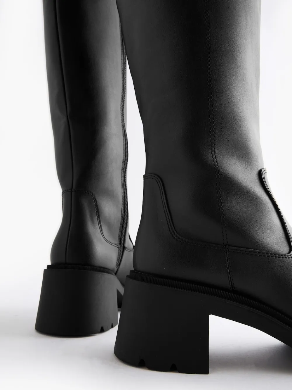 Deze kniehoge laarzen zijn een must-have voor je garderobe voor koud weer. Ze hebben een grof silhouet, een ronde neus, een ritssluiting aan de zijkant voor eenvoudig aantrekken en een Forever Comfort ® voetbed met demping, afgewerkt met een blokhak. Kniehoog Zijrits Ronde neus Forever Comfort ® voetbed Stevige hak Hakhoogte 6,5 cm. Bovenwerk – Andere materialen, voering en sok – Andere materialen, textiel, zool – Andere materialen.