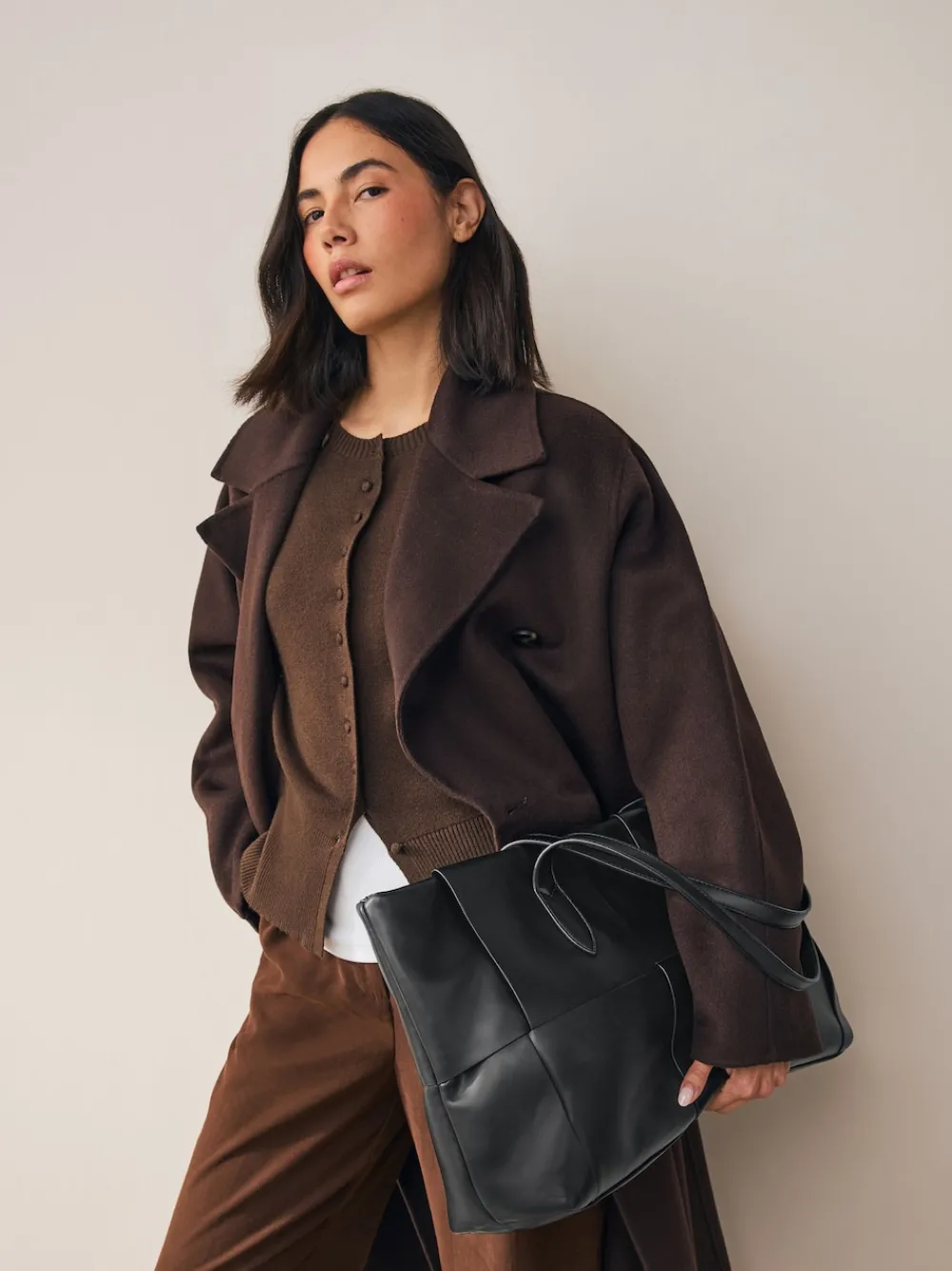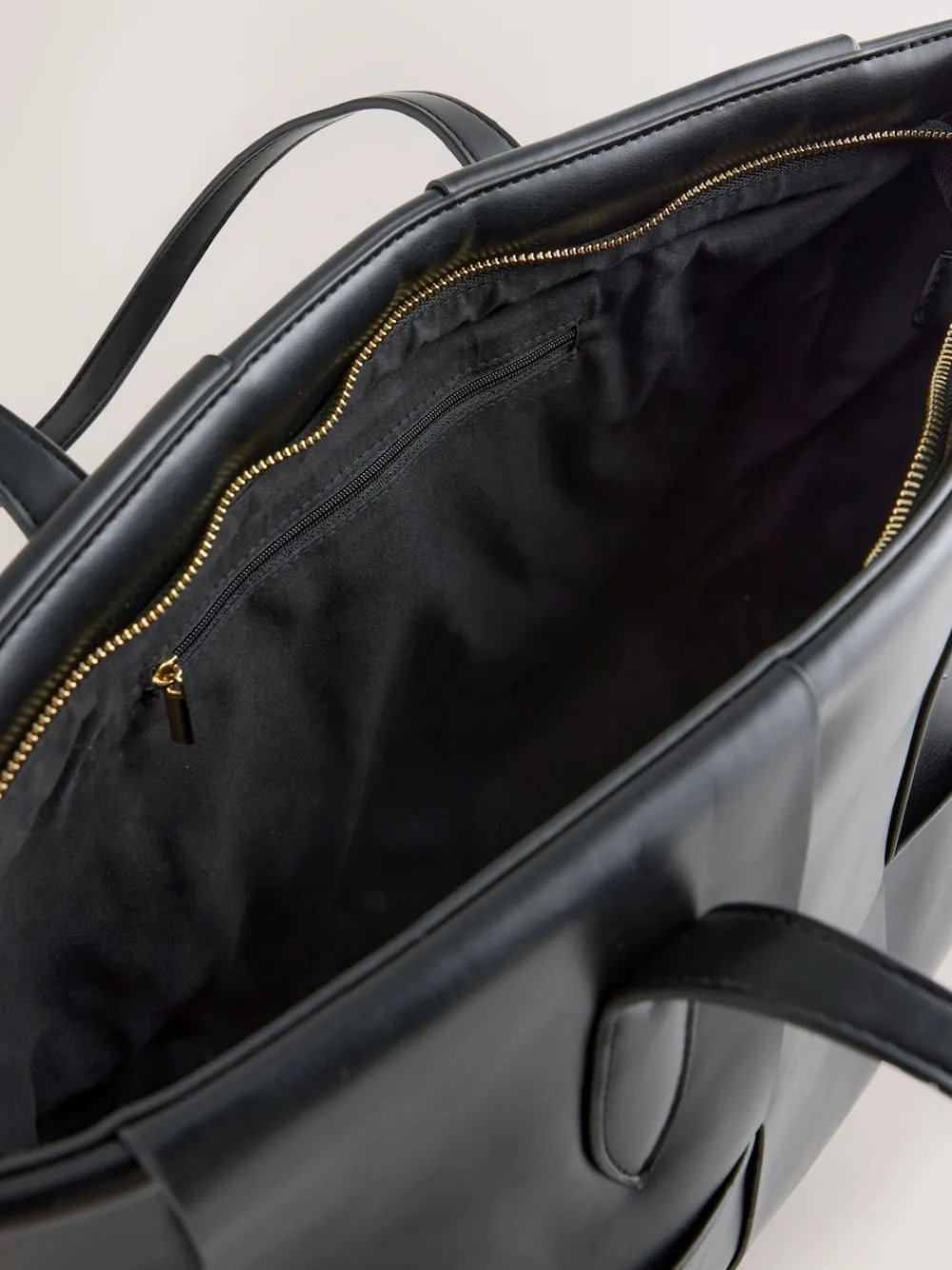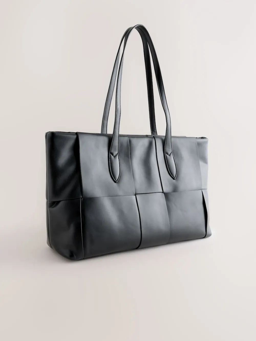 Elevate your everyday carryall with this stylish black weave shoulder bag. Crafted from soft fabric, the tote features a chic woven detail across the body. Its generous size and secure inside zip pocket make it the perfect sophisticated accessory for work or day-to-day use. Weave panel detail Shoulder strap handles Inside zip pocket Hoogte 30 cm Breedte 48 cm Diepte 5,5 cm Buitenkant 100% PU. Voering 100% gerecycled polyester.
