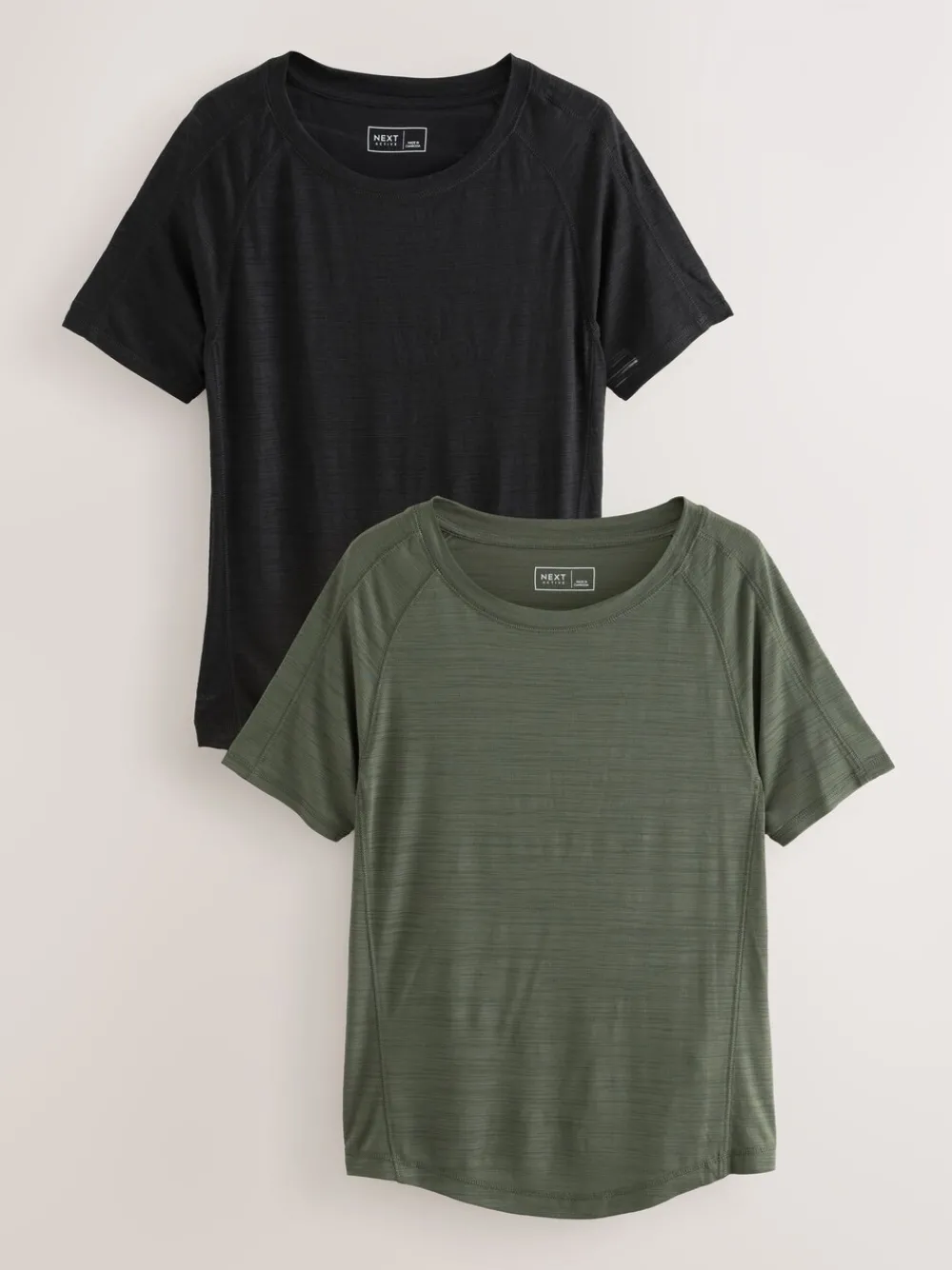 Maximise performance with this two pack of lightweight active T-shirts. Featuring a crew neck and back pleat detail, they are designed to keep you cool during any workout. Benefit from anti-odour technology and moisture management properties. Lightweight fabric Crew neck Short sleeve Back pleat detail Two pack Anti-oder technology Moisture Management Properties Machinewasbaar. 2 x T-shirt 50% viscose, 50% polyester.